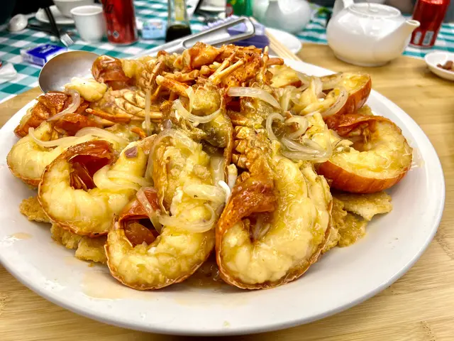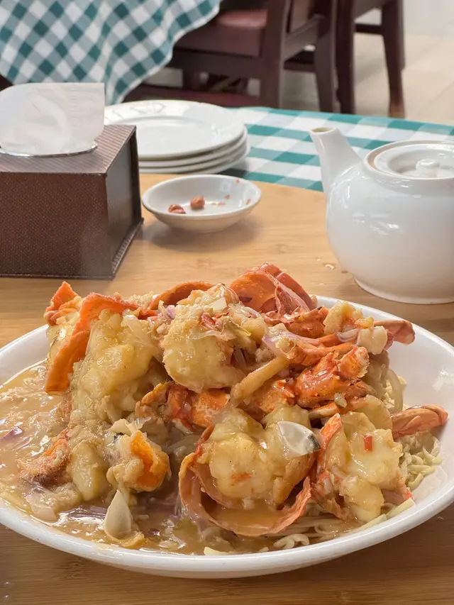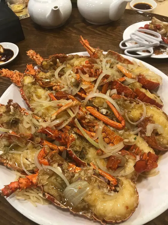 這位置最偏的酒家,但卻非一般的正斗!牡丹蝦新鮮至極,蝦身隻隻晶瑩剔透,肉質爽脆,蝦頭還會動!真夠生猛!蝦頭炸後盡是金黃,蝦膏滿溢,美味程度足讓我們完全把膽固醇拋諸腦後!椒鹽瀨尿蝦也值得一試!蝦肉鮮甜爽口,伴着惹味椒鹽,直是極品!友人笑說龍蝦伊麵的主角是伊麵,當然不是!龍蝦爽甜,半隻已是大滿足!伊麵君,我要把你放下了。壓軸登場的薑蔥蒸鮑魚,比手掌還要大,1.5吋厚,確可稱王!薑蔥本已提鮮,簡單加上少許豉油,已能成為世界級美食。肉質軟韌適中,真是味蕾上的享受!這晚的鮮味,可真精彩絕倫!查看更多