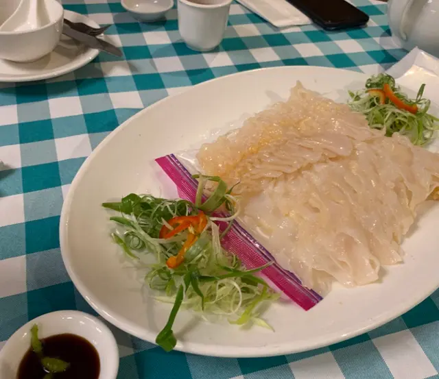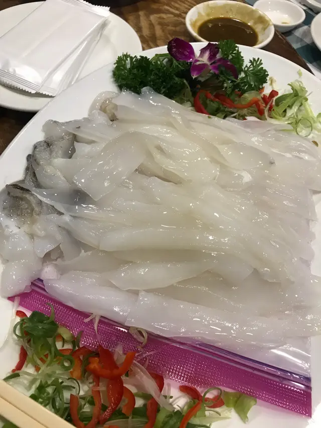 今晚來到鯉魚門的龍騰酒樓吃晚飯。餐廳有兩層,裝修比較傳統,帶有懷舊氣息。首先上桌的是刺身,象拔蚌刺身未吃已聞到一陣腥味,不過海鮮有腥味是正常的。刺身帶甜味,尚算爽口,雖然有墊冰,但如果溫度再凍一點更好。相對來說,魷魚刺身比較失色,不過非常新鮮,觸鬚仍在捲動。椒鹽賴尿蝦幾惹味,肉很多,不會煮得過老,保持了蝦的鮮味。蟶子米粉底很推薦,蟶子新鮮又鮮甜,豉汁沒有搶走味道。米粉炸得香脆,唯一美中不足是米粉明顯有油味,稍嫌油膩。黃皮老虎斑炸魚,極度推薦,從未吃過口感這麼爽彈的魚,新體驗。不是每天都有這種魚,想吃請預早幾日打電話叫老闆留魚。黃皮老虎球起肉炒球,魚肉鮮嫩,但不及炸的驚艷。蒸蟹,好多膏,蟹肉紥實。南瓜露糖水香濃,食飽都一定要飲👍查看更多