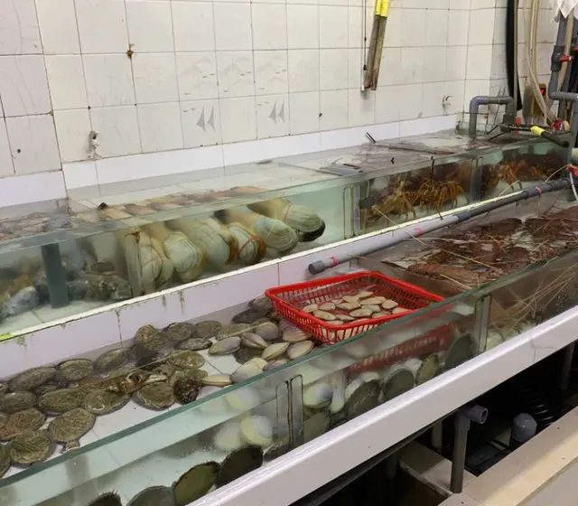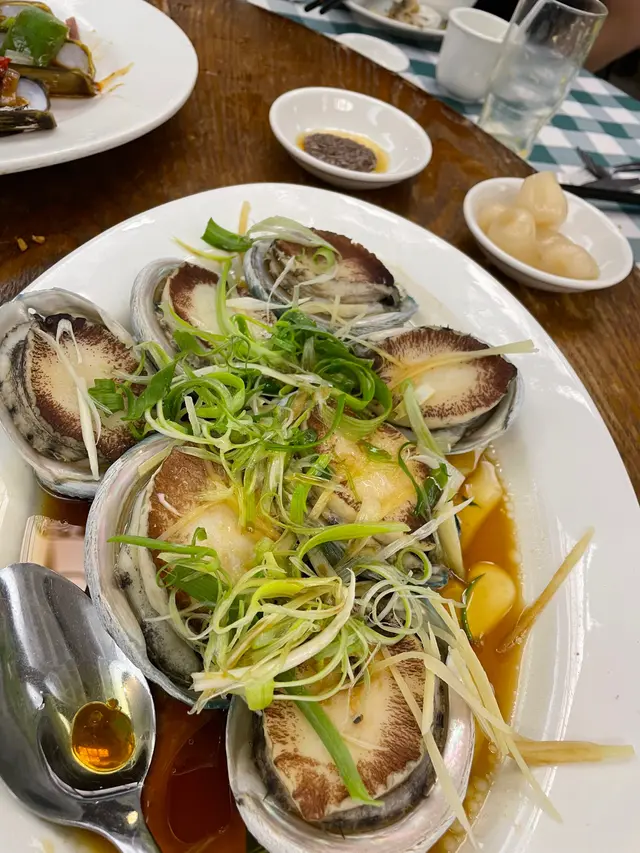我地鐘意去呢間因爲佢出面有枱,可以睇到鋰魚門景,我次次去鋰魚門都會為左個景而去呢間。叫左支白酒,400蚊吾貴,落大雨出面得我地一枱,有個阿姐特登出黎酙酒,服侍我地呢一枱(所以張單甘貴,哈哈)碟碟都好好食,其實次次都無伏,耐吾耐都去食,預左500一位,吾計支酒,今次貴左d⋯⋯吾抵得要寫下(供晾人地既價錢出黎,遲早入blacklist 哈哈)我朋友好勇敢,叫sashimi牡丹蝦,佢夠膽叫我夠膽食,食完無肚疴,甘其實呢間舖既衛生情況都好好。個蝦頭整返熟豉油汁煮,個蝦頭勁好食,多肉到同甜到呢⋯⋯蝦身做sashimi好大隻,不過都係食日本菜果d牡丹蝦甜d好食d⋯⋯ nice try!呢度個果皮係陳年果隻,阿媽都話而家好難買靚果皮,所以果皮蒸鮑魚係必食。不過果皮數量一次俾一次少,今次隻鮑魚上面得兩三條.....老虎斑同冬風螺無咩特別吾洗講。竟然無帶子炒西蘭花!結果食左個薑汁芥蘭,油到呢⋯⋯下次都係吾好叫炒菜食查看更多