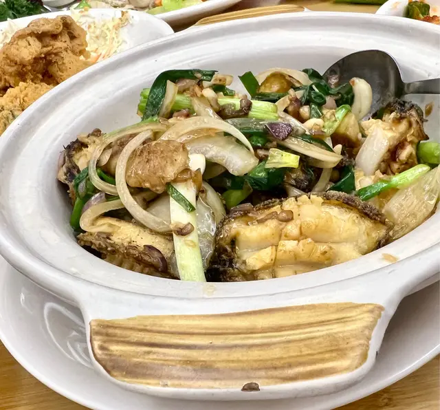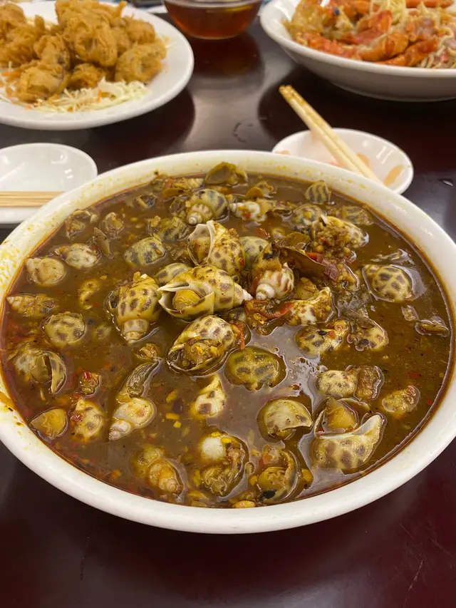 今日與好友相聚,同往鯉魚門吃海鮮。這家店是朋友介紹的,水準穩定。餐廳是一貫海鮮飯館的格局,沒有富麗堂皇,就是樸實企理的模樣。椒鹽瀬尿蝦:這瀨尿蝦炒得相當香口,蝦肉剛剛離殼,蝦肉相當鮮甜,肉質爽嫩,又帶鹹香,比斑馬瀨尿蝦好吃得多。豉椒炒蟶子:蟶子啖啖肉,炒得爽口,還有貝類獨有的鮮甜味,配上惹味香口的豉椒,味濃而不過鹹,配白飯一流。鹽水魷魚:這魷魚相當新鮮,只是用簡單的鹽油水,已經吊起了魷魚的鮮味,魷魚肉質柔軟,完全不費勁去咬,不錯。花甲粉絲湯:這花甲有驚喜,估唔到花甲咁鮮甜,有少少清酒煮蜆那一種風味,粉絲索了鮮甜的湯汁,十分滋味,正呀!蒸魚:這蒸魚蒸到剛離骨,火侯剛剛好,魚肉又鮮甜又嫩滑,加上甜豉油的加持,鮮上加鮮。椒絲腐乳通菜:吃晚飯少不了青菜,這通菜帶腐乳的香,帶一點油亮,唔韌無渣,是正常水平。豆腐海鮮湯:呷一口海鮮湯,原來是豆腐魚湯,呈奶白色,湯汁充滿魚味,但又唔腥,有少少大頭菜吊味,十分順喉滋潤。蒸奄仔蟹:一年只有兩倜月吃到奄仔蟹,現在正值時令,蟹膏又多,蟹十分肥美,充滿黃油,蟹膏的甘香加上鮮甜的蟹肉,甘香鮮美,太滋味了,失儀態也要黏手指。最後送上的甜點是夏威夷木瓜,十分香甜,果肉結實。這一天的海鮮晚餐十分豐富,四大一細埋單二千七,約六七百一位,味道相當不錯,今天捧腹而回。查看更多