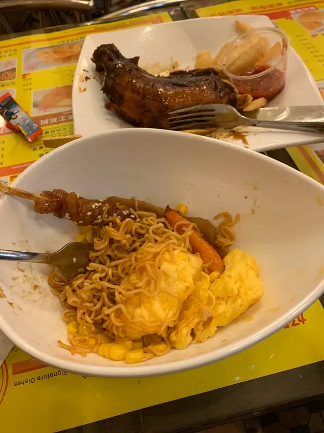 未試過食撈面食到要加茄汁加蠔油⋯我平時已經食得清淡⋯但都覺得無味:(之後再叫多左知滷水雞髀薯條⋯唔知佢地係咪有獨特既烹調方法⋯啲雞髀一如以往 硬到啊婆一食會甩牙⋯