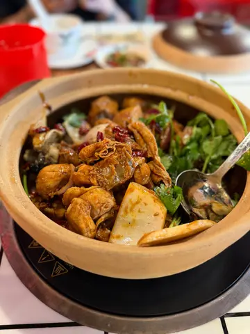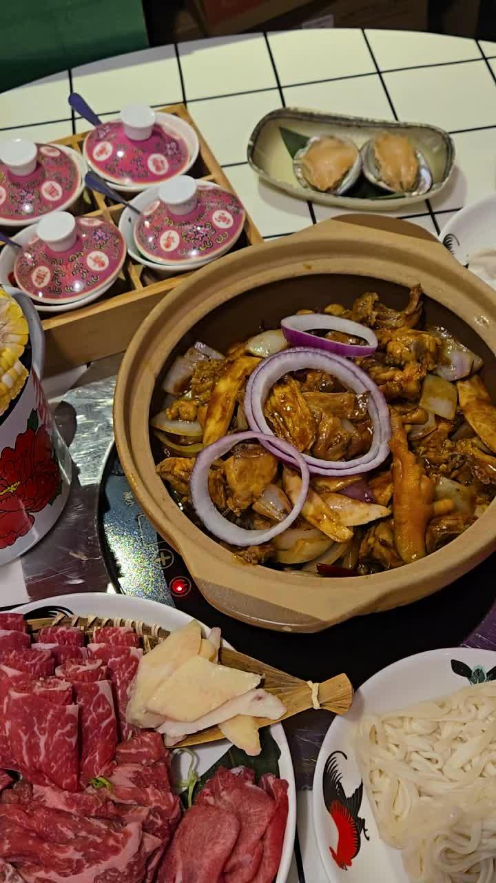 一入去已经好似返回70、80年代的感觉。连招牌都用霓虹灯做成,墙上贴满好多70-80年代嘅旧poster、电话、唱片。仲有以前喺酒楼会见到嘅结婚龙凤雕像。要热水时,餐厅都会使用70-80年代的热水壶。现场更大播70-80年代的怀旧香港经典歌曲。现在有客人生日,更会播福寿歌同比个寿字你帮你去中式背景到影相。西班牙黑毛猪:播歌脂肪分布靓到像大理石纹,渌10秒即刻捞起,入口即化仲带住果木香。同普通猪肉完全唔同层次,个肉汁甜到漏,点少少豉油已经够晒吊味。必食推荐!无骨风翼酿鸡煲:厨师手工了得!鸡翼拆骨酿入西芹红萝卜虾胶,咬落「索索声」又弹牙。食完热辣辣嘅鸡煲再放汤就可以打边炉。龙凤呈祥杂菜拼盘:摆盘精致到唔舍得渌!有生菜、油麦菜,娃娃菜,莲藕、白萝卜、蕃茄、粟米、金菇及云耳。全部蔬菜都非常新鲜最下面绿色蔬菜竟然塞到成个盘都满晒,非常足料龙凤呈祥牛肉拼盘:一次过试匀本地手切牛肉,顶级雪花牛肉,南非和牛金钱𦟌,牛舌片,骰子牛肉粒,牛胸尖共6款。牛味浓到像在草原奔跑,渌耐啲都唔韧,抵赞!自家制陈年咸柠七:打边炉绝配!咸柠檬腌到黑过墨汁,一啜落去咸、酸、甜完美平衡,仲有阵陈皮香。够气够冰,解腻一流,饮完成个胃顺返晒!最紧要系小时候嘅味道。…查看更多