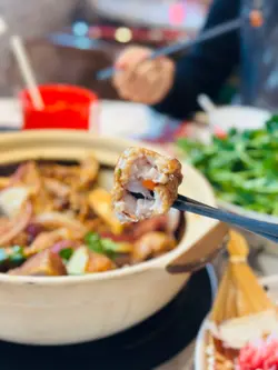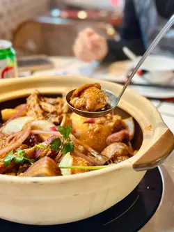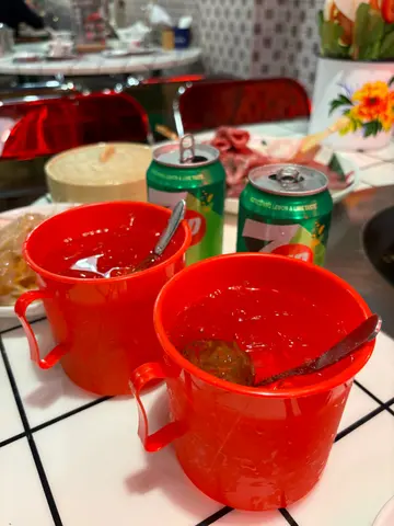周末中午与友人约了在这间充满怀旧色彩的龙凤呈祥吃鸡煲及打边炉。约在中午的好处是人流相对少,不用等位,也可以坐久一点慢慢吃 🥢招牌无骨凤冀酿鸡煲($298/细)辣度及咸度可调整,选了少鸡煲酱及不辣,味道刚好!鸡煲用了花椒八角等香料调味,把虾胶及红萝卜酿入去骨鸡翼中,吃起来肉嫩又弹牙、美味又方便!吃完鸡煲再加汤去打边炉 🥢龙凤呈祥牛肉拼盘($388/细)包括本地手切牛肉、顶级雪花牛肉、南非和牛金钱𦟌、牛舌片、骰子牛肉粒、牛胸尖(共6款)手切牛肉及雪花牛肉肉质软滑,骰子牛肉粒牛味香浓,金钱𦟌及牛舌片肉质较爽、牛胸尖牛油味香又爽口 🥢自制炸鱼皮($68)非常香脆!即使浸过汤汁也是脆的! 🥢手打蟹子鲜虾丸($88/6粒)爽弹又有鲜味 🥢龙凤呈祥杂菜拼盘($138)一盘已包括了白萝卜、金菇、生菜、蕃茄等。友人喜欢吃芫莤($43)又另外单点了一碟,每款蔬菜都非常新鲜 🥤自家制陈年咸柠七($38)以旧式漱口盅装,非常特别!打边炉饮非常清爽解渴! *酱介($26/位)*有即弃围裙提供…查看更多