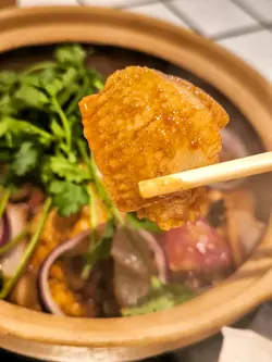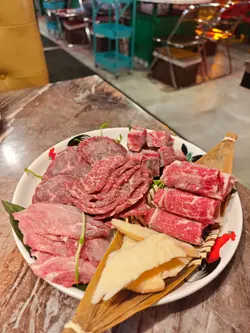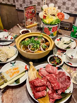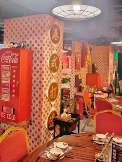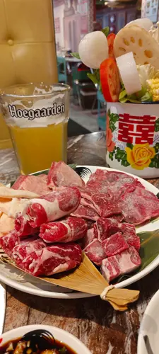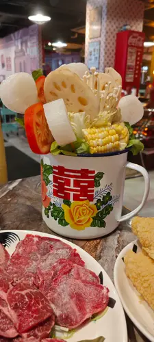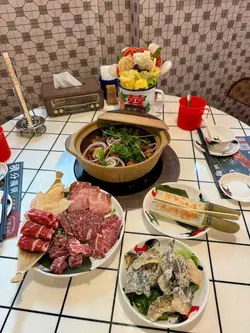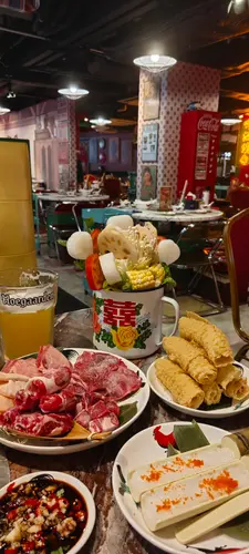 一入去已經好似返回70、80年代的感覺。連招牌都用霓虹燈做成,牆上貼滿好多70-80年代嘅舊poster、電話、唱片。仲有以前喺酒樓會見到嘅結婚龍鳳雕像。要熱水時,餐廳都會使用70-80年代的熱水壺。現場更大播70-80年代的懷舊香港經典歌曲。現在有客人生日,更會播福壽歌同比個壽字你幫你去中式背景到影相。西班牙黑毛豬:播歌脂肪分布靚到像大理石紋,淥10秒即刻撈起,入口即化仲帶住果木香。同普通豬肉完全唔同層次,個肉汁甜到漏,點少少豉油已經夠晒吊味。必食推薦!無骨風翼釀雞煲:廚師手工了得!雞翼拆骨釀入西芹紅蘿蔔蝦膠,咬落「索索聲」又彈牙。食完熱辣辣嘅雞煲再放湯就可以打邊爐。龍鳳呈祥雜菜拼盤:擺盤精緻到唔捨得淥!有生菜、油麥菜,娃娃菜,蓮藕、白蘿蔔、蕃茄、粟米、金菇及雲耳。全部蔬菜都非常新鮮最下面綠色蔬菜竟然塞到成個盤都滿晒,非常足料龍鳳呈祥牛肉拼盤:一次過試勻本地手切牛肉,顶级雪花牛肉,南非和牛金錢𦟌,牛舌片,骰子牛肉粒,牛胸尖共6款。牛味濃到像在草原奔跑,淥耐啲都唔韌,抵讚!自家製陳年鹹檸七:打邊爐絕配!鹹檸檬醃到黑過墨汁,一啜落去鹹、酸、甜完美平衡,仲有陣陳皮香。夠氣夠冰,解膩一流,飲完成個胃順返晒!最緊要係小時候嘅味道。…查看更多