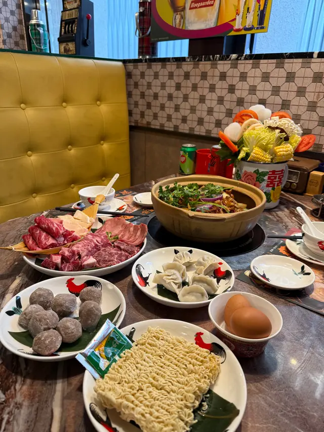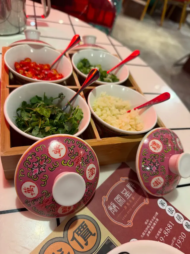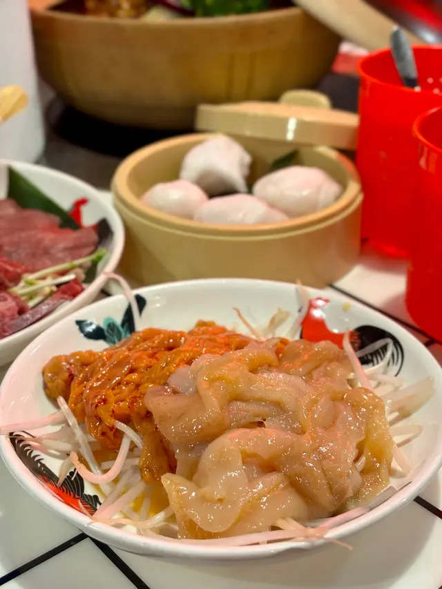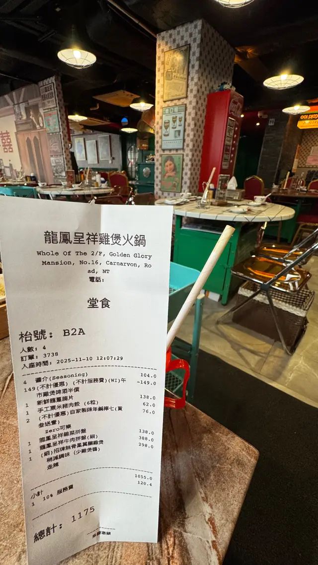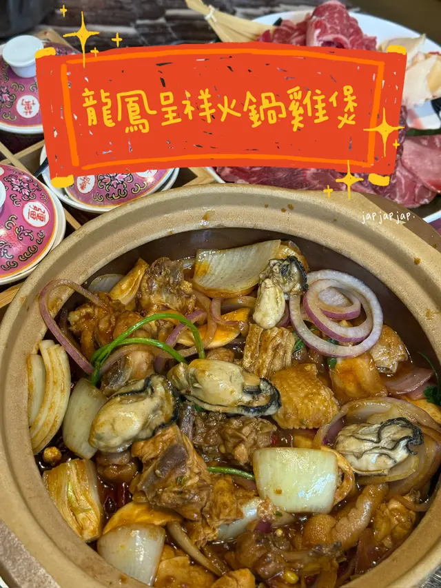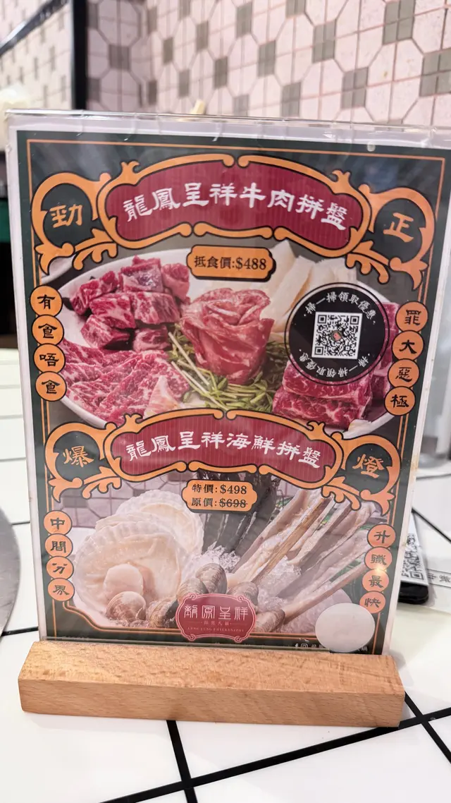 周末中午與友人約了在這間充滿懷舊色彩的龍鳳呈祥吃雞煲及打邊爐。約在中午的好處是人流相對少,不用等位,也可以坐久一點慢慢吃 🥢招牌無骨鳳冀釀雞煲($298/細)辣度及咸度可調整,選了少雞煲醬及不辣,味道剛好!雞煲用了花椒八角等香料調味,把蝦膠及紅蘿蔔釀入去骨雞翼中,吃起來肉嫩又彈牙、美味又方便!吃完雞煲再加湯去打邊爐 🥢龍鳳呈祥牛肉拼盤($388/細)包括本地手切牛肉、頂級雪花牛肉、南非和牛金錢𦟌、牛舌片、骰子牛肉粒、牛胸尖(共6款)手切牛肉及雪花牛肉肉質軟滑,骰子牛肉粒牛味香濃,金錢𦟌及牛舌片肉質較爽、牛胸尖牛油味香又爽口 🥢自製炸魚皮($68)非常香脆!即使浸過湯汁也是脆的! 🥢手打蟹子鮮蝦丸($88/6粒)爽彈又有鮮味 🥢龍鳳呈祥雜菜拼盤($138)一盤已包括了白蘿蔔、金菇、生菜、蕃茄等。友人喜歡吃芫莤($43)又另外單點了一碟,每款蔬菜都非常新鮮 🥤自家製陳年鹹檸七($38)以舊式漱口盅裝,非常特別!打邊爐飲非常清爽解渴! *醬介($26/位)*有即棄圍裙提供…查看更多