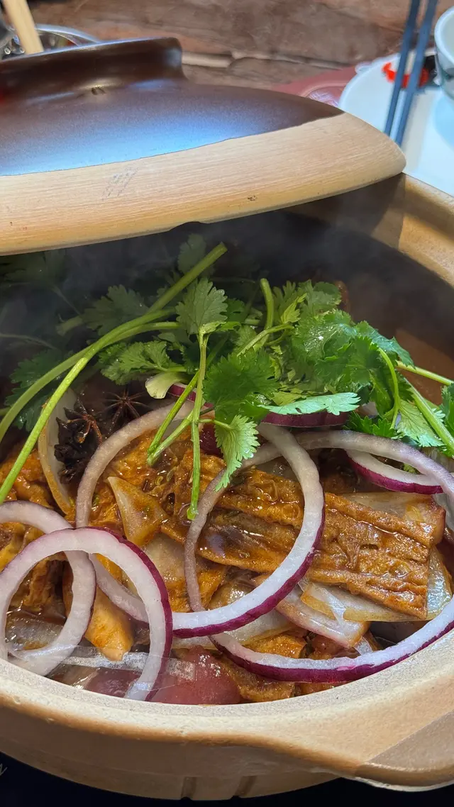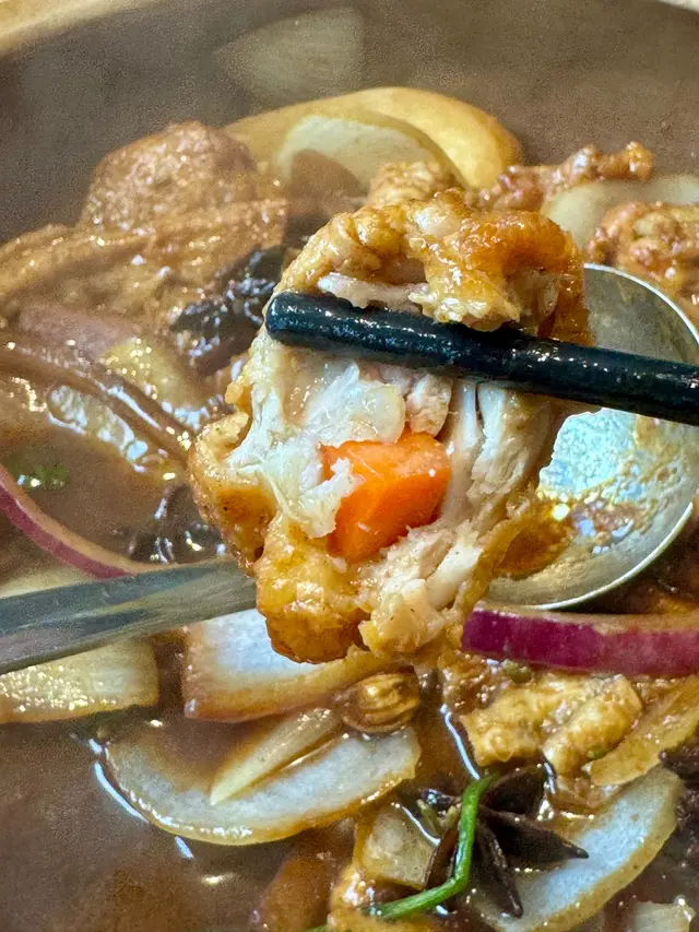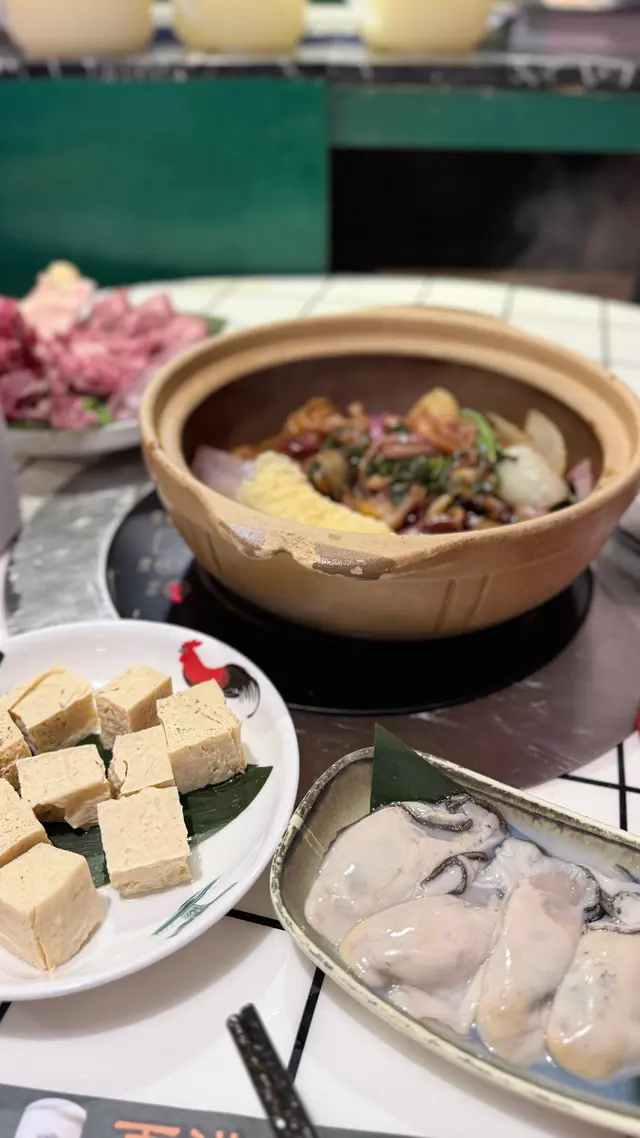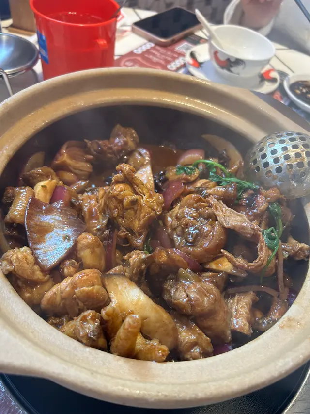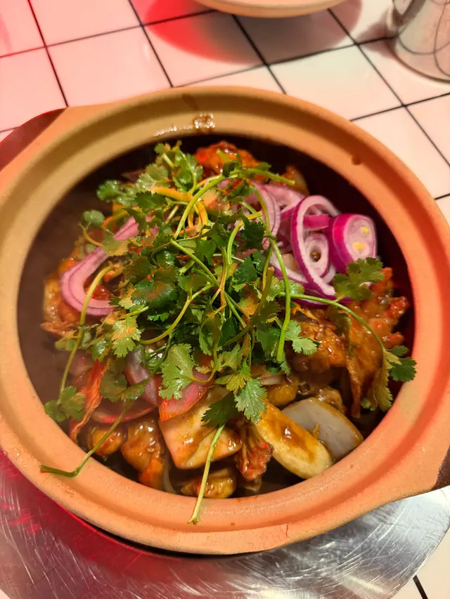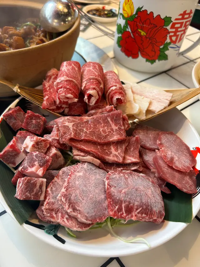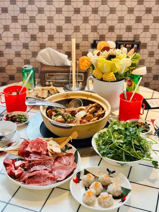 周末中午與友人約了在這間充滿懷舊色彩的龍鳳呈祥吃雞煲及打邊爐。約在中午的好處是人流相對少,不用等位,也可以坐久一點慢慢吃 🥢招牌無骨鳳冀釀雞煲($298/細)辣度及咸度可調整,選了少雞煲醬及不辣,味道剛好!雞煲用了花椒八角等香料調味,把蝦膠及紅蘿蔔釀入去骨雞翼中,吃起來肉嫩又彈牙、美味又方便!吃完雞煲再加湯去打邊爐 🥢龍鳳呈祥牛肉拼盤($388/細)包括本地手切牛肉、頂級雪花牛肉、南非和牛金錢𦟌、牛舌片、骰子牛肉粒、牛胸尖(共6款)手切牛肉及雪花牛肉肉質軟滑,骰子牛肉粒牛味香濃,金錢𦟌及牛舌片肉質較爽、牛胸尖牛油味香又爽口 🥢自製炸魚皮($68)非常香脆!即使浸過湯汁也是脆的! 🥢手打蟹子鮮蝦丸($88/6粒)爽彈又有鮮味 🥢龍鳳呈祥雜菜拼盤($138)一盤已包括了白蘿蔔、金菇、生菜、蕃茄等。友人喜歡吃芫莤($43)又另外單點了一碟,每款蔬菜都非常新鮮 🥤自家製陳年鹹檸七($38)以舊式漱口盅裝,非常特別!打邊爐飲非常清爽解渴! *醬介($26/位)*有即棄圍裙提供…查看更多
