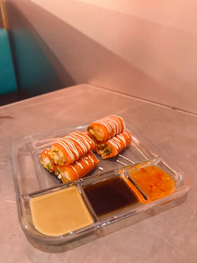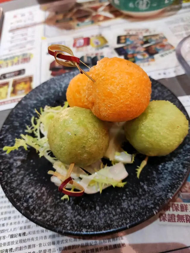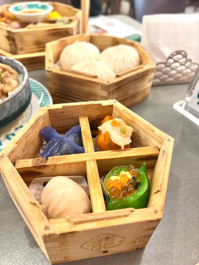 我們分別叫了叉燒腸粉,黑金流沙包,以及一盤精緻又設計新穎的點心。