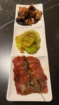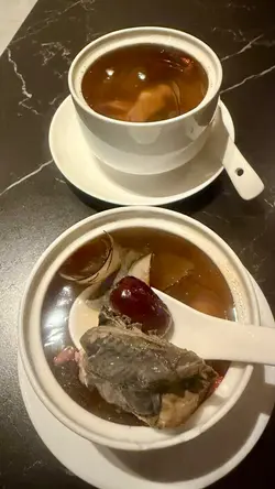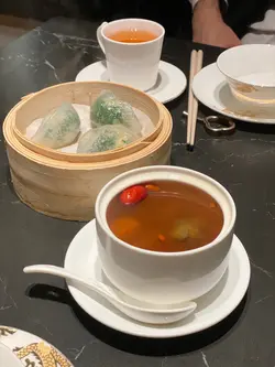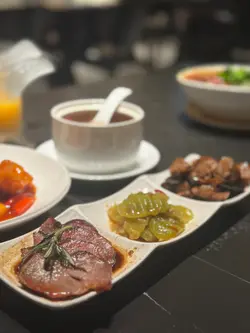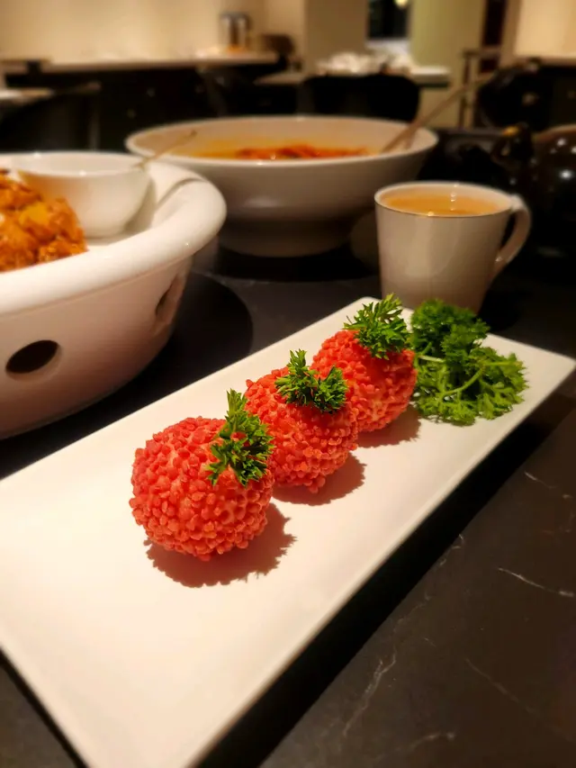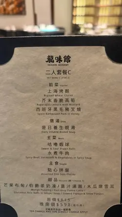 好耐无食中菜,今次拣左间主打中式点心同精致中菜餐厅🍴最近仲推出咗两款二人套餐,有成八道菜咁多,真系好抵食!二人套餐 C $598前菜上海烤麸经典嘅上海冷盘小食,以烤麸作为主料,加上木耳、香菇等等嘅配料制成。每样食材都吸收哂酱汁,食落口感丰富,味道香浓。芥末香脆莴荀莴荀炸到金黄香脆,加上芥末令到莴荀食起上嚟更惹味,食落口感爽脆同时带点咸香。西班牙黑毛猪叉烧叉烧烤到外层有点焦香,同时色泽亮丽,非常吸睛。食落肉质嫩滑多汁,口感好juicy,腌得非常入味。炖汤姬松茸竹笙炖鸡汤饮落鸡味香浓,姬松茸令个汤更鲜。主菜咕噜虾球虾球好大只,食落口感滑溜弹牙,鲜味十足,酱汁味道酸酸甜甜,非常开胃。水煮牛肉上菜时香气扑鼻,麻香味十足,牛肉份量都几多,食落口感非常嫩滑,钟意食辣嘅朋友绝对唔可以错,唔太食得辣嘅朋友亦可要求少辣。主食点心拼盘呢间餐厅嘅点心非常精致,啱哂打卡影相。点心拼盘有五款点心,包点同炸物都有,可以一次品尝哂餐厅最出色嘅点心,真系超满足。甜品芒果布甸食落口感滑溜,甜度啱啱好,仲有好多芒果。木瓜炖雪耳饮落好香甜嘅南瓜味,雪耳好足料,滋补又美味。…查看更多
