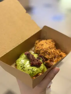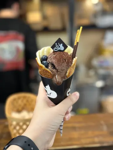 每次经过依间店都见到劲多人排队.佢嘅法式牛角可丽饼同窝夫选择都几多.法式牛角可丽饼 - 香蕉朱古力 (HK$45)香蕉配朱古力一定冇得输!上面有劲大嚿Mövenpick雪糕.雪糕里面仲有朱古力脆脆.可丽饼嘅皮好特别, 唔似喺日本食𠮶款又薄又软.佢系脆口嘅牛角包质感, 带点甜味.除咗有香蕉仲有蓝莓做点缀.Cream同雪糕嘅比例拿捏得啱啱好.食完唔会腻.我觉得成个可丽饼口感好丰富, 好好食.麻糬牛角包窝夫 (HK$40)宇治金时抹茶控必试!抹茶酱好浓郁.窝夫外脆内烟靭.满满牛油香, 配上微甜嘅红豆蓉, 味道层次分明.超好食.咸蛋肉松平时食窝夫都系食甜嘅, 冇谂过咸嘅都咁好味.肉松好香咸蛋味, 令人一试爱上.如果要二选一, 我会拣呢款咸蛋肉松麻糬牛角包窝夫.够特别又好味!整体嚟讲, 呢间店嘅可丽饼同窝夫真系好好食!下次一定要试其他口味!…查看更多
