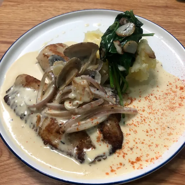 1) Homemade Spaghetti with Prawns and Beef in Port Wine GravyExcellent homemade pasta (with beef mixed into it) and two prawns served at the side. Most restaurants/takeaway shops would stick to either beef or prawn and it is really good value to be able to enjoy both along with homemade pasta at this price (HKD85)!(2) French-Style Sauteed Clams in Butter, Garlic and White Wine SauceThis is on the snacks menu (HKD48). A classic combination and hardly ever disappoints!(3) Pan-fried Ox TongueThis is also on the snacks menu (HKD54). Generously-sliced ox tongue pan-fried in garlic - simple and delicious. A family favourite on the menu.(4) Sauteed Mixed Greens in XO SauceThis is on the snacks menu (HKD44). Not a particularly interesting option, but it offers a healthy portion and variety of greens!There were seats in the shop where you can sit while you wait. My takeaway was ready after around 15 minutes. Shop attendants were friendly and attentive. P.S. This shop also offers cheaper options that spells "boring", but I guess that is needed to capture different market sectors in these districts. …查看更多