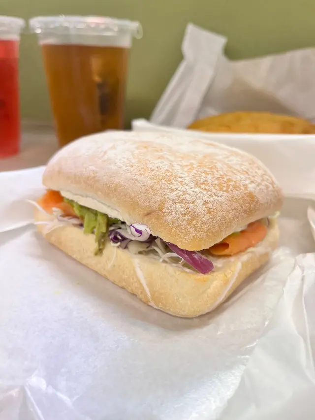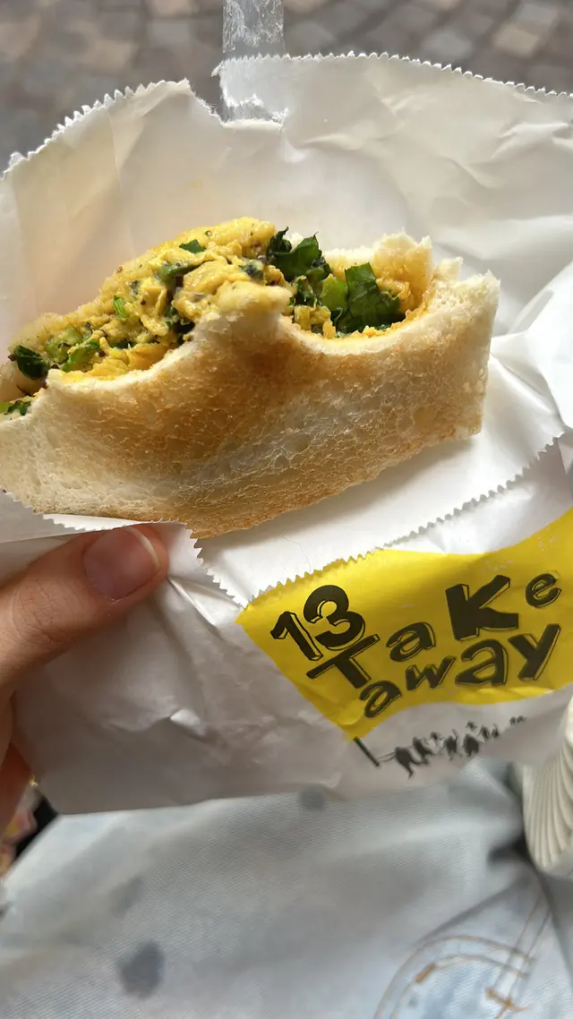 黑松露荽茜炒蛋三文治烘底加蔥配柚子茶梳打水