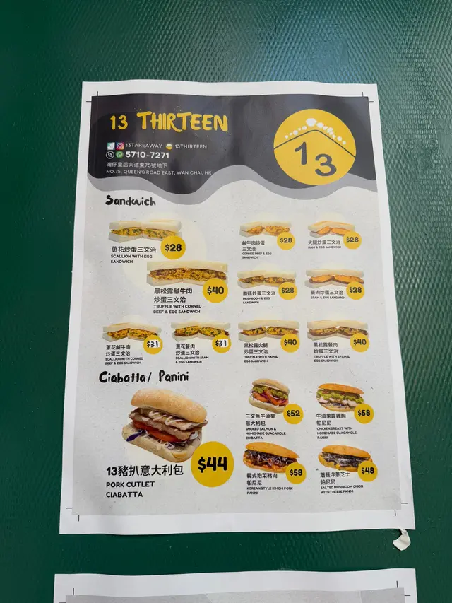 13 Thirteen (湾仔) 网址: https://s.openrice.com/QrLS0Bby6W0 地址: 香港灣仔皇后大道東75號地舖 电话: +852 57107271