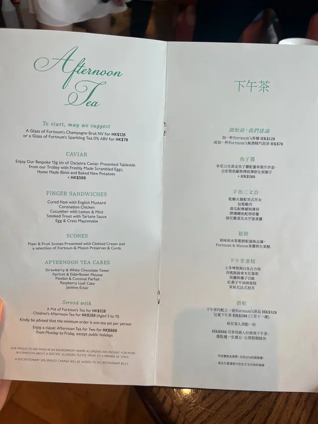 讲到经典英式下午茶🫖一定系呢间百年英国品牌🇬🇧餐厅环境优雅 充满英伦风 饱览维港无敌海景🌊庆生仲有蛋糕送添🎂.📌Savoury Afternoon Tea 咸点下午茶 $558📌Afternoon Tea 下午茶 $528劲贴心 有提供咸/甜选择✨ .〰️FINGER SANDWICHES 手指三文治〰️1️⃣Cured Ham with English Mustard-干腌火腿配英式芥末 几开胃🥓2️⃣Coronation Chicken-加冕鸡肉带浓郁香料味 加埋提子干 增添果甜🍗3️⃣Cucumber with Lemon & Mint-青瓜配柠檬薄荷酱 爽脆清新🥒4️⃣Smoked Trout with Tartare Sauce-烟熏鳟鱼咸鲜软嫩 配搭塔塔酱 更惹味🍣5️⃣Egg & Cress Mayonnaise-普通鸡蛋碎沙律🥚.〰️SCONES, SAVOURY SCONES 松饼,咸松饼〰️1️⃣Plain & Fruite Scones-松饼金黄酥脆 入口扎实松软富奶香甜味💛Clotted Cream劲绵密幼滑 奶味浓醇🥛再涂上自家士多啤梨果酱同柠檬Curds 酸甜清新🍓🍋2️⃣Rosemary & Tomato and Salmon & Chive Scones-咸味松饼相对松软湿润 迷迭香+番茄好特别🌿加埋Tomato Chutney 好开胃🍅三文鱼+香葱唔错 食到咸鲜香🍣同柠檬百里香Cream Cheese超夹🧀.〰️SAVOURY PÂTISSERIES英式小食〰️1️⃣Duck Fat Potato Cake with Oscietra Caviar & Smoked Crème Fraiche-层层薯仔片 鸭油香十足 配以鱼子酱同烟熏法式酸奶油 更惹味🥔🦆2️⃣Ticklemore Goat Cheese with Spiced Tomato Chutney-山羊芝士味道超浓郁🧀番茄酱多啲更解腻🥫3️⃣Devonshire Crab Tartlet with Mango & Avocado-酥脆挞皮酿入鲜甜螃蟹肉, 芒果同牛油果 几清爽🦀🥭🥑4️⃣Quail & Pea Scotch Egg with Herb Aioli-苏格兰鹌鹑蛋配香草蒜泥 酥脆香口🥚但豌豆草青味较重🫛5️⃣Chicken Liver Parfait & Apricot Gel-鸡肝酱软滑浓香 裹上薄薄杏桃啫喱 酸甜解腻🐔.〰️AFTERNOON TEA CAKES下午茶蛋糕〰️1️⃣Strawberry & White Chocolate Tower-士多啤梨慕丝+白朱古力片 甜而不腻🍓2️⃣Apricot & Elderflower Mousse-杏桃配接骨木花 啖啖花香果甜味🌸3️⃣Pandan & Coconut Parfait-班兰同椰子一定夹 够晒清香🥥4️⃣Raspberry Loaf Cake-蛋糕扎实松软唔过腻 混入红桑子 酸酸甜甜🍰5️⃣Jasmine Eclair-泡芙酥脆松化 阵阵茉莉花茶甘香🍵.〰️CAKE TROLLEY 蛋糕车〰️焦糖香蕉芝士蛋糕 口感软滑 味道又几夹🍌🧀加埋lotus饼底同焦糖酱 更加正🍮杂莓忌廉蛋糕就普通 偏干🍰.〰️下午茶均配一壶Fortnum'‘s茶品〰️1️⃣ROYAL BLEND 皇家红茶-1902年创制 最著名嘅调配茶 甘醇浓厚☕️2️⃣VICTORIA GREY 维多利亚伯爵茶-2020年创制 以伯爵茶特有佛手柑香气为基础 并将甘草, 薰衣草, 矢车菊等混合 比平时更清香有层次🍵…查看更多