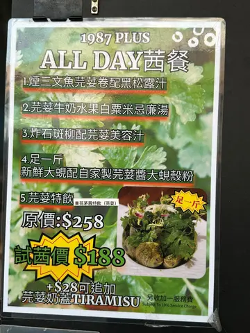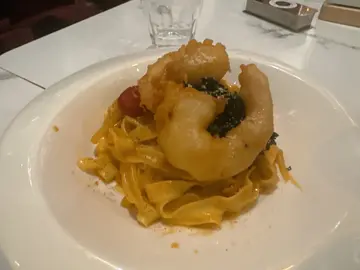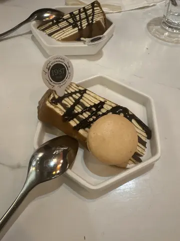这次我们点了 「1987 Plus 二人餐」,整体用餐体验相当愉快,餐厅无论在食物质素、环境氛围还是服务态度上都令人满意。前菜是沙律配帕尔玛火腿,咸香的火腿与清爽的生菜和甜美的番茄相互平衡,令人开胃。还有一款酒味西瓜,入口冰凉多汁,带著淡淡的酒香,既解腻又特别,让人忍不住想多吃几口。甜品造型精致,口感细腻,让整餐的开端充满期待感。主菜我选择了加 $120升级至 M6 澳洲和牛,但侍应告诉我这次刚好入货的是 M9,简直赚到了!牛排肉质软嫩多汁,油花分布均匀,香气浓郁,烤制火候恰到好处,配上的酱汁更能衬托牛肉本身的风味。伴碟的蔬菜和薯片亦不马虎,色彩和口感都很丰富。而猪扒肉质亦十分好!至于意粉同样令人印象深刻,面条弹牙、酱汁浓郁,炸虾外脆内嫩,搭配得宜。整体而言,这间餐厅不仅食材用心,味道出众,环境舒适,服务细致周到,是值得再次光顾的好地方