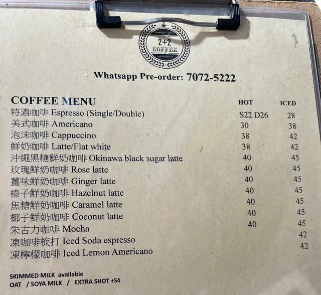 2+2 Coffee (荔枝角) 网址: https://s.openrice.com/QrLS0d4W900 地址: 香港荔枝角青山道489-491號香港工業中心A座地下A5A號舖 电话: +852 70725222