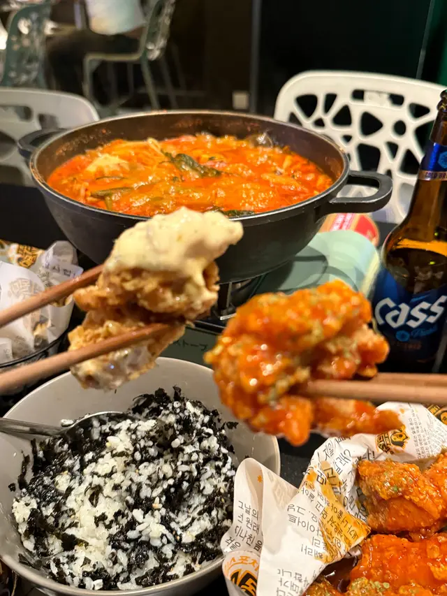 位於尖沙咀赫德道嘅「Kim’s Pocha✨」,呢間餐廳真係唔錯,提供傳統韓國美食,值得一試🍽️「海鮮煎餅」外脆內嫩,海鮮味十足,配上醬汁食真係好味🦐🥢 。「牛肉炒粉絲✨」牛肉炒得恰到好處,粉絲吸收咗所有味道,令人回味🍜「燉牛排骨✨」係一個驚喜,肉質軟嫩,湯汁濃郁,非常適合搭配白飯🍚🥩 「韓式炸芝士豬扒✨」外面脆脆,裡面仲有濃郁嘅拉絲芝士,好滿足!🧀🍖海苔飯就係一個清新嘅選擇,配襯燉牛肉非常夾🍙「Kim’s Pocha」真係一個唔錯嘅晚餐選擇,食物質素同環境都好,去尖沙咀嘅時候要試下😋✨…查看更多