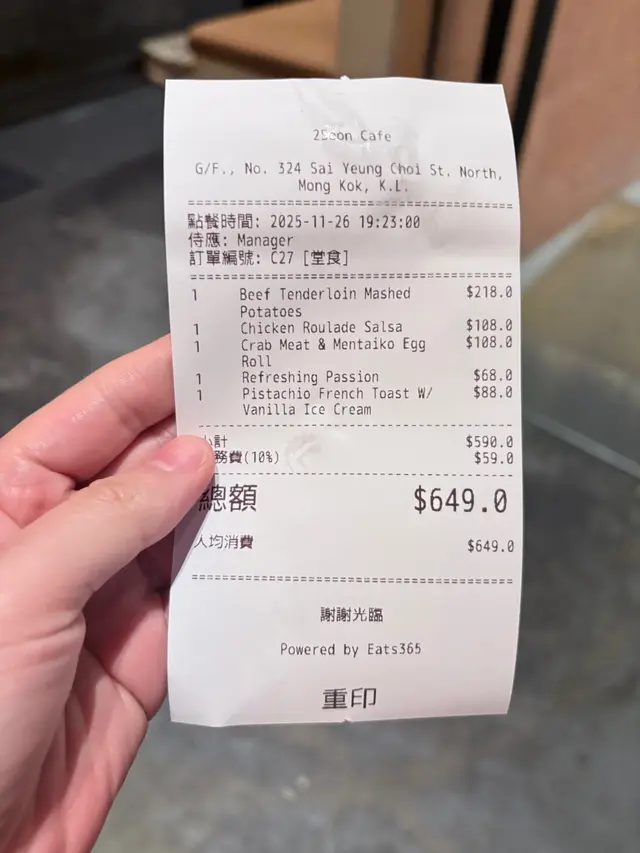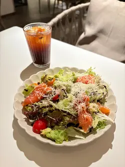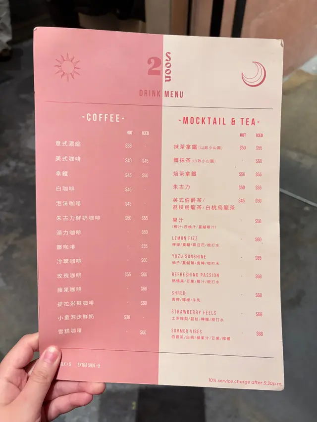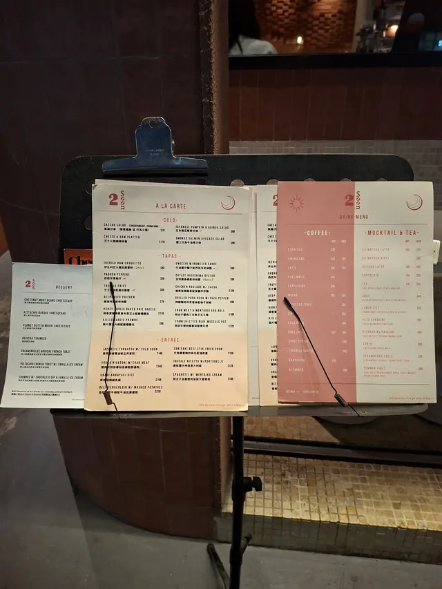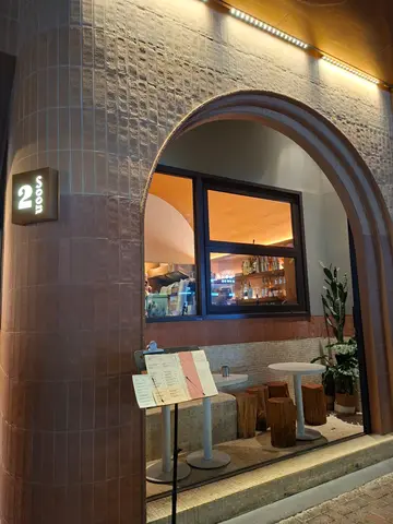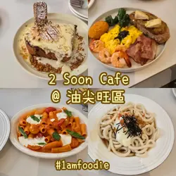 2 Soon Cafe白天是咖啡店,晚上有酒精饮品提供,给人两种不同的感觉。餐厅楼底很高有两层,墙身装修用上水泥色,配以圆形线条,环境气氛不俗。 餐厅已转新的菜单,有更多选择。烟三文鱼牛油果沙律新鲜沙律菜伴上烟三文鱼、牛油果及车厘茄,加上芝士碎及酸甜黑醋,清新开胃。慢煮香辣鸡卷配菠萝莎莎酱慢煮鸡肉卷成圆桶状,再切片淋上菠萝莎莎酱,鸡肉非常嫩滑,菠萝莎莎酱酸酸甜甜与鸡卷很配。香煎慢煮牛柳配牛油忌廉薯蓉前菜与主菜都用慢煮方法烹调,能够锁住肉汁,令牛柳外脆内软,肉质柔软嫩滑。原个烤蒜头外皮烧脆,蒜肉又软又甜,是扒类上佳配菜,蒜头营养亦高。开心果巴斯克蛋糕开心果果仁香气与芝士味道很夹,芝士蛋糕外皮带有点点焦香味,内里质感松软,有流心效果。抹茶拿铁抹茶拿铁质感幼滑温醇,有明显抹茶味但未至于太浓,甜度适中。焙茶拿铁焙茶拿铁与抹茶拿铁相比,它甜度及咖啡因含量较低,适合在一天中的任何时间享用。…查看更多