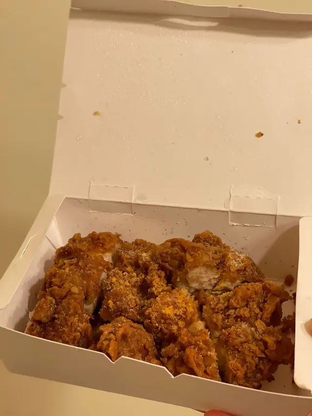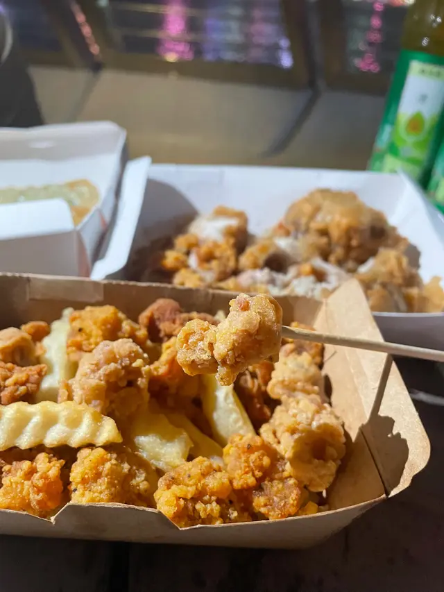 好多小食選擇嘅365炸雞 hkfoodiencats等级42022-01-27188 浏览 关注 呢間365炸雞成日都見到,但次次經過嗰陣都唔肚餓,今次終於有機會試。Shake Shake 雞肶肉(大)$37有好多款唔同口味嘅粉可以自己加落去,我見到幾款都想試,就好為食咁幾款都加咗落去,包括紫菜粉、蜂蜜牛油粉、芝士粉。食落去蜂蜜牛油味好出,甜甜地幾好食,雞肉都幾滑。呢份大嘅份量大約有12粒雞肉左右,份量都幾夠。韭菜餅(3件) $25有啲似煎韭菜豬肉餃,不過就再香脆啲,同埋皮薄啲咁,餡料豐富,值得一試。炸燒賣 $16一份有八粒,炸左嘅燒賣比起平時嘅蒸燒賣嘅口感會豐富好多,口感幾彈牙。炸墨丸 $20有十粒,每粒係切開咗一半嘅墨丸,炸完之後好香。司華力腸 $15見佢寫住必食就試吓,司華力腸已經切開左做一粒粒,食用方便。口感好彈牙。…查看更多+ 3以上食记乃用户个人意见 , 并不代表OpenRice之观点。赞好分享好多小食選擇嘅365炸雞 365炸雞 (萬事達廣場) https://s.openrice.com/QrLT0MTD100检举 张贴 评分4味道4环境5服务4卫生5抵食用餐途径外卖自取