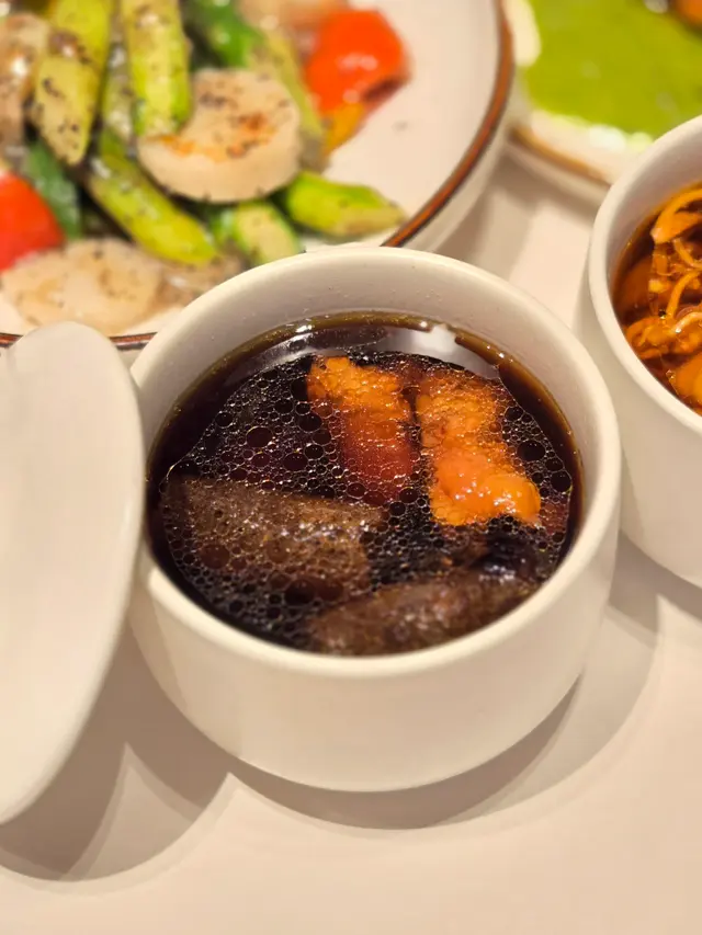 🌸鐵鍋照燒鰻魚飯套餐 $168🌟🌟🌟🌟🌟鰻魚切到條狀,燒得夠香口,還有洋蔥、菌類等等,拌入白飯非常好味。🍀山蘇拌繡球菌🌟🌟🌟🌟🌟生蘇葉口感特別,爽脆繡球菌口感像珊瑚蚌一樣。🍀黑蒜粒竹笙燉雞湯🌟🌟🌟🌟🌟濃郁黑蒜味道,黑蒜粒非常鮮甜,多條爽脆竹笙,雞湯非常濃郁。🌸午市套餐🍀酸菜魚泗粉 $168🌟🌟🌟🌟🌟金湯非常香濃,酸菜魚夠嫩滑,泗粉煙煙韌韌,嗍埋湯汁非常惹味。🍀九轉小腸🌟🌟🌟🌟🌟爽脆口感🍀蟲草花淮山燉雞湯🌟🌟🌟🌟🌟養生滋潤湯,湯底非常鮮甜,而且雞味濃郁。🌸涼拌萵荀絲 $48🌟🌟🌟🌟🌟爽口嘅萵荀絲,解油膩一流。🌸亞叁醬蒸黃花魚$168🌟🌟🌟🌟🌟鍾意食魚嘅,你不要錯過啦!亞叁醬惹味而且能提鮮,黃花魚鮮甜,多細骨,食嘅時候要小心啊!🌸清酒花蛤$118🌟🌟🌟🌟🌟清甜飽滿花蛤肉,每一隻都大大隻,好味到停唔到口。🌸廈門薑母鴨$138🌟🌟🌟🌟🌟濃郁薑味道,鴨肉均是起肉,入口啖啖肉,夾埋薑片薑絲勁惹味。…查看更多