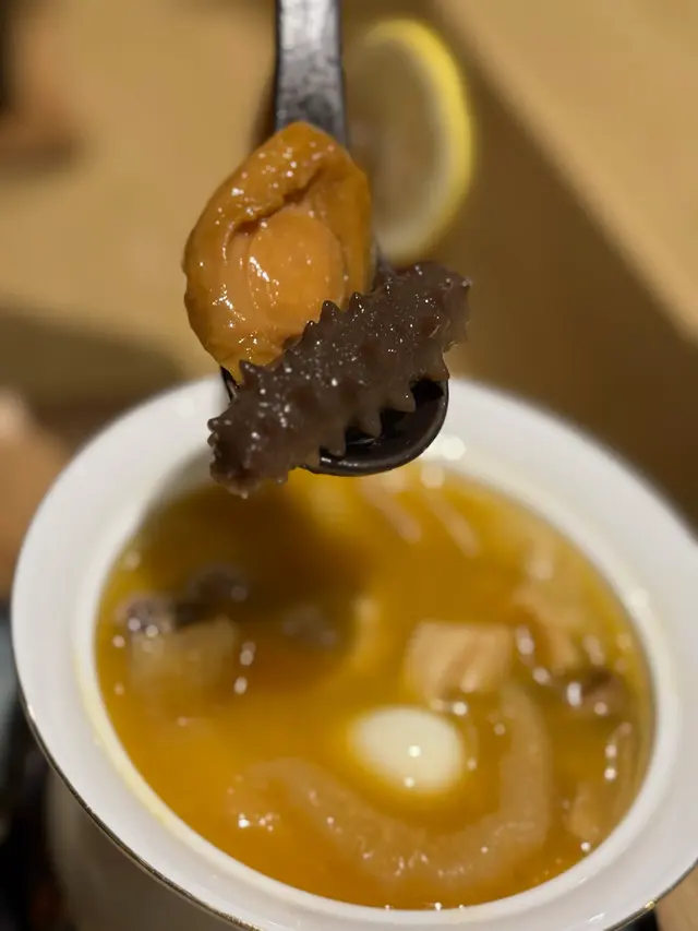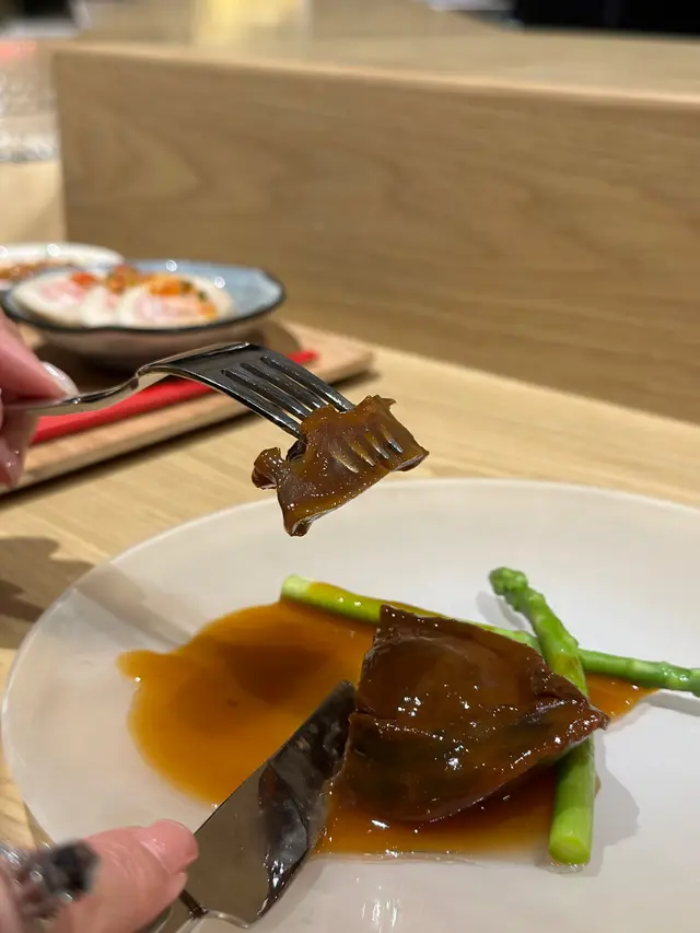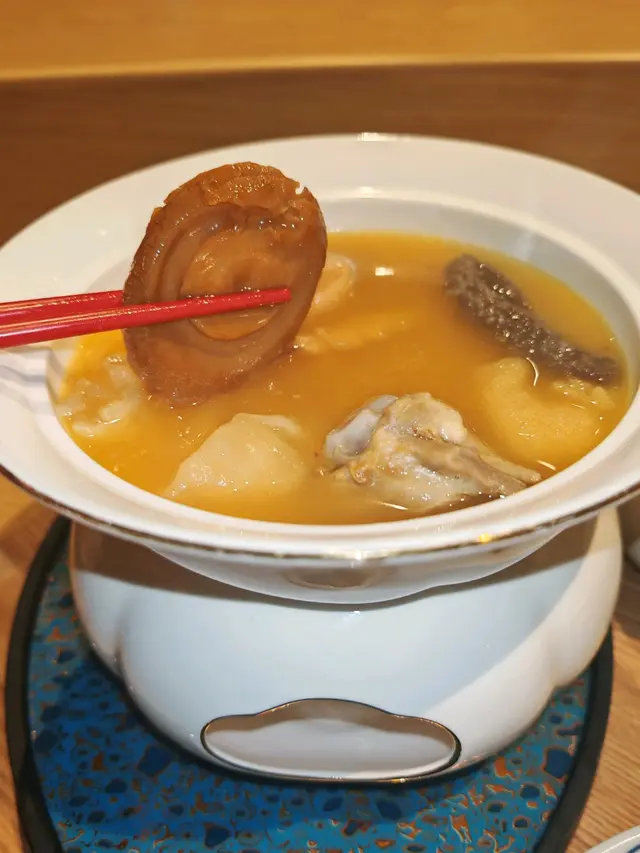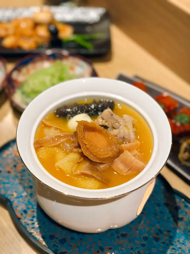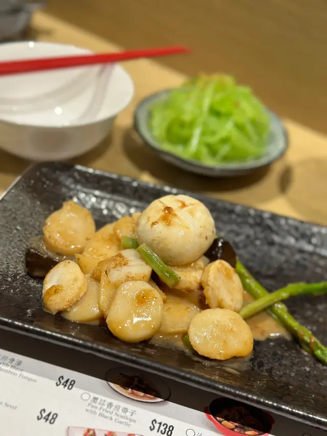 吉品溏心鮑配 油拌麵(套) 冰梅番茄仔(套) 姬松茸竹蓀排骨湯(套) 黑蒜香煎帶子 砂煲豆醬焗黃魚 酸菜紅焼肉 高麗菜燜炒米粉