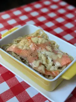 炭烧鸡扒窝夫汉堡配薯条用窝夫代替面包,口感外脆内软,鸡扒炭香浓郁,咬落去有层次感。最意外的亮点却是薯条——金黄香脆,入口带微微咸香,完全停不了口。平时减肥人士可能只会忍住食一两条,但这里的薯条令人破戒,最后忍不住把整份清光,心情愉快又带点罪恶感 🤪另一道焗刁草芝士汁烟三文鱼珍珠带子意粉,则展现了另一种细腻。芝士汁浓,带点香草的清新,烟三文鱼咸香与珍珠带子的鲜甜呼应。意粉吸收了酱汁,滑顺而满足,感受海鲜与芝士的交融。