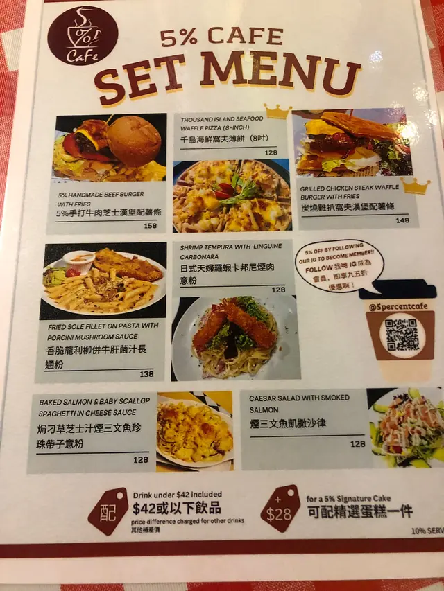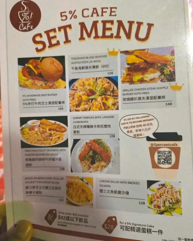 5% Cafe (旺角) 网址: https://s.openrice.com/QrLS07ku900 地址: 香港旺角彌敦道577號高氏大樓2樓BC號舖 电话: +852 27839873