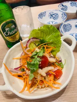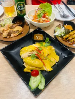 妈子生日,上次同佢食中菜,今次就带佢嚟食泰国嘢。话泰国嘢但系都有少少fusion成分。嗌在个二人餐再加野。套餐里便仲系价钱转嘅,丰俭由人。小食一嚟就系个泰式凤爪二人份量都算系咁。另外个猪肉卷平时少食就试吓,有少少似食炸芋丝春卷,食落唔算油腻,不过上碟嘅时候佢已经切断咗卖相就有啲散乱。本身佢有几款鸡嘅选择,妈子话食泰国嘢就食海南鸡,食落去唔算滑亦都偏咸,似客家咸鸡多啲,只鸡唔算肥。另外加㗎串烧就唔算特别,正常发挥,不过份量就偏少。咖喱软壳蟹个咖喱底就偏咸,似中式咖喱感受唔到泰式𠮶种椰香感觉。反而几钟意佢个肉骨茶,虽然唔系我最钟意嘅重药材味,但系我觉得比起其他泰式嘅菜更加好。枯仔茶甜甜酸酸几好饮。另外个椰汁红豆冰个沙冰底做得几好。
