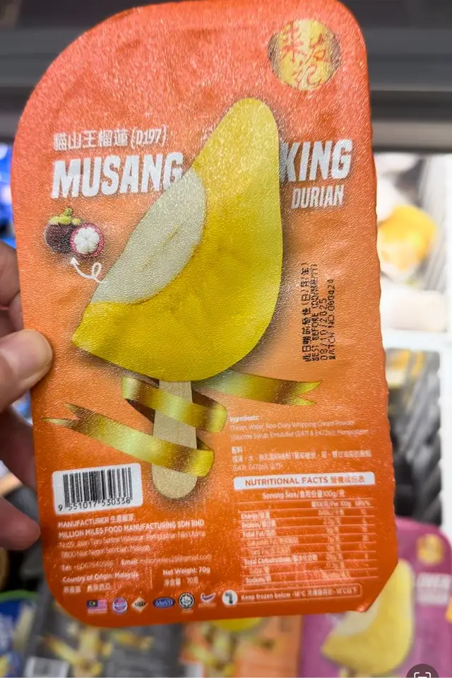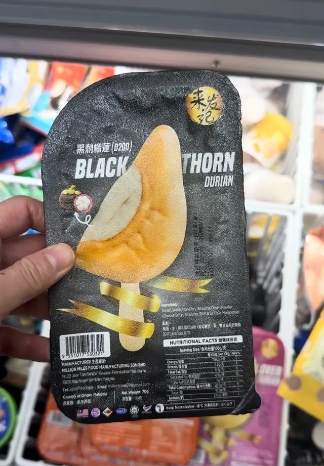 吃完lunch,,要吃甜品的時候,榴槤控可以一齊睇睇,認真不錯,滿滿都榴槤肉感,可以試試😋而黑刺榴槤🍨猫山王榴蓮雪糕( $38)▶️濃郁的榴蓮風味與冰涼的雪糕完美結合,帶來獨特的口感和味道,香濃、甜美且口感綿密的榴蓮,每一口都充滿榴蓮的香甜和奶油的滑順!🍨而黑刺榴槤 ($42 )▶️則是另一種榴蓮品種,其果肉較為纖維質,口感較為爽脆,風味較為清爽。兩者在口感和風味上有所不同,加上冰凍的口感、就如吃真實的榴槤肉一樣!不過就略為昂貴,成不多三十多元一支、不太化算🤣查看更多