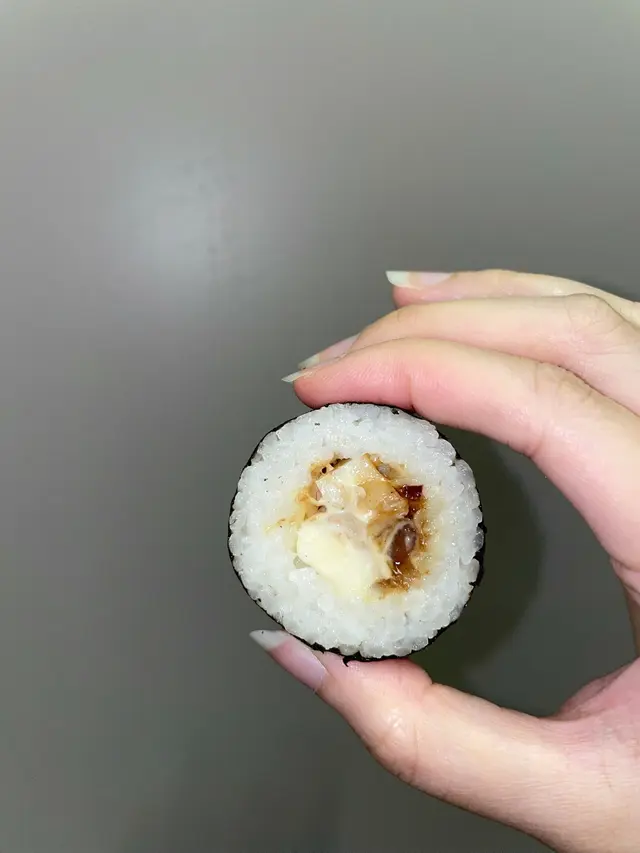 🍙章魚燒日式手卷 $21材料方面有魷魚 墨魚 魚條 水牛芝士經過叮熱30秒後🦑墨魚同魷魚都煙韌有咬口🐟魚條就好似平時魚片咁都幾彈牙🧀️水牛芝士同樣係一粒粒長方形味道少少鹹香但唔會過鹹質地都係有啲嚼勁照燒醬醬汁甜度比較突出質地黏稠度同炭燒雞飯糰醬汁差唔多味道都好還原到章魚燒嘅感覺仲有啲美乃滋令整體更濕潤同埋帶點酸味中和翻查看更多