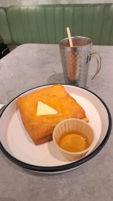 轻量火腿通粉配忌廉鲜奶炒滑蛋、粟米脆瓜、茄汁豆、蒜香牛油多士$36⭐️⭐️⭐️⭐️见到餐牌写蛋白麦皮,原来有得转火腿通粉👍🏻。火腿通佢话轻量,但份量都几多,味道就正正常常啦🆗。炒蛋都好creamy,好滑。但粟米同翠玉瓜就唔热嘅😢。多士系全块,上面搽满好多蒜蓉酱,多到有少少咸🤣。早餐仲配热饮,叫咗热奶茶茶走,甜度适中,热饮都好大杯🔥。呢个价钱咁大份早餐,我觉得好抵食!🤩