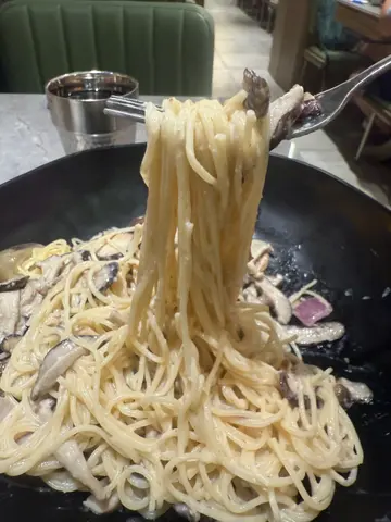 今晚无人煮饭要岀街食,近近地喺楼下食。本身想叫拉面食,点知发现天使面仲平少少,我又钟意食加上好耐无食,所以决定叫香草野菌忌廉天使面。天使面够软硬刚好,野菌够多足料,忌廉汁亦都够,唔会干净净!可惜呢个唔系餐,无汤无嘢饮,要加的话,汤加$9,嘢饮半价,我加左咖啡,要走甜少冰,浓啲,都算对我要求跟得几足。以集团式嘅屋苑餐厅黎讲,呢间算系几好味,合格以上。