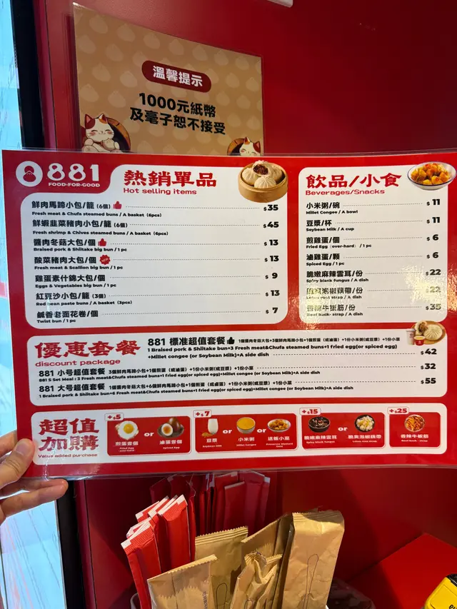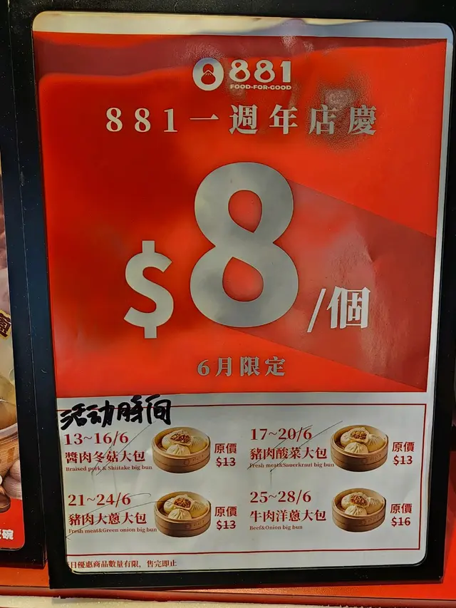 行過見到師傅搓粉,主打即包即蒸,感覺新鮮又健康,即刻決定買外賣番公司食,新鮮熱辣,的確好味。💖881標準超值套餐💖✨豬肉酸菜大包✨大包很大個,食落鬆軟。入面嘅豬肉餡好夠腍,肥瘦適中,配搭酸菜嘅微酸爽口,層次感十足。✨鮮肉馬蹄小包✨ 小包皮相對較薄,咬落去有啲彈牙感。鮮肉餡好豐富,入面馬蹄粒好爽脆,豬肉餡多汁,味道自然清爽。一口一個,好快就俾我食完🤣。✨滷蛋✨ 滷蛋真係滷得好入味,味道濃郁且有鹹香味。搭配搭包子食用,可以中和肉餡嘅油膩感,令整個餐味道更平衡。✨豆漿✨ 豆漿香濃,帶陣陣豆香味,喝落順滑,不會太甜膩,暖暖地,好養胃❤️。✨跟餐小菜✨ 小菜份量細細一盒,爽口又開胃,幫助解膩。新鮮蒸製,價錢合理,高質且性價比高,值得支持。想睇更多介紹,馬上Follow我啦😁。#881 #包子 #早餐 #午餐 #食包 #外賣 #在地人推薦 #上環美食 #上環好去處 #上環 #big_big_foodie #big_big_foodie食勻上環 #big_big_foodie食勻香港…查看更多