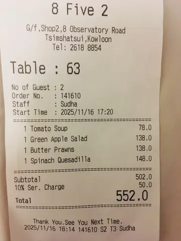 8Five2 Restobar 酒吧餐厅位于尖沙咀天文台道,主打墨西哥菜。半露天开放式空间、有情调嘅灯光加埋抢眼嘅人像壁画,设计已经够晒exotic。播住轻快英文歌,啱晒一班朋友锯扒饮嘢,chill住吹水!白酒煮蚬伴莎莎酱 $138一上枱就闻到牛油香冲过嚟,蚬肉只只爆肥冇沙,鲜甜到爆~ 随餐附送两块tortillas,个鲜甜白酒汁拎嚟点薄饼一滴都冇嘥!惹味烤猪肋骨 $198/半份呢道菜真心抵~ 用刀轻轻一𠝹就离骨,肉质松化到呢⋯⋯面层烧烤酱甜辣惹味,带出猪肉香又唔会太腻,食完指尖黐立立先至过瘾!水牛城牛肉墨西哥馅饼 $160个人私心推荐~ 馅饼外皮烘到金黄色,啲辣牛肉碎同半溶芝士涌出嚟,辣度啱啱好吊味,送啤酒一流。Taylor Swift Favorite $128呢杯cocktail一入口就好refreshing!前奏清爽嘅Dry Gin同后调St German接骨木花甜香撞埋一齐。Lillet Blanc带少少柑橘同蜜糖香,沟埋grape fruit嘅微酸,甜酸度啱啱好,饮落清爽带微甜,女仔实钟意,难怪叫Taylor Swift Favorite!总括嚟讲,8Five2 Restobar环境够chill,食物份量足~ 绝对系尖沙咀抵食又有格调嘅酒吧餐厅。想锯靓扒、饮特色cocktail唔使硬食贵价,快啲mark低约班fd去试啦!…查看更多