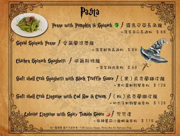Went to this Harry Potter-themed cafe which I had bookmarked for a long time with my friend..We ordered Soft Shell Crab Spaghetti with Black Truffle Sauce and Seafood Risotto with Neapolitan Sauce to share.For the Spaghetti, the Soft Shell Crab was huge and quite crispy. The crab was more meaty than I expected but it was a bit greasy. The spaghetti was creamy but a bit soft. For the Risotto, it got shrimps, scallop, squid and mussel. The Neapolitan Sauce was quite overwhelming, making the risotto watery. The mussel could be fresher too.As we liked their soical mdeia account and shared a post in story, we got one free chocolate cake. Its chocolate flavour tasted a bit artificial though, reminding us of Sara Lee chocolate cake sold in the supermarket..If you are a Harry Potter fans, you will be definitely mesmerized by the place. Decorated with Harry Potter related merchandise and drawings, the resto immersed in to the HP world. It also had posters and slogans which supported HK people. …查看更多