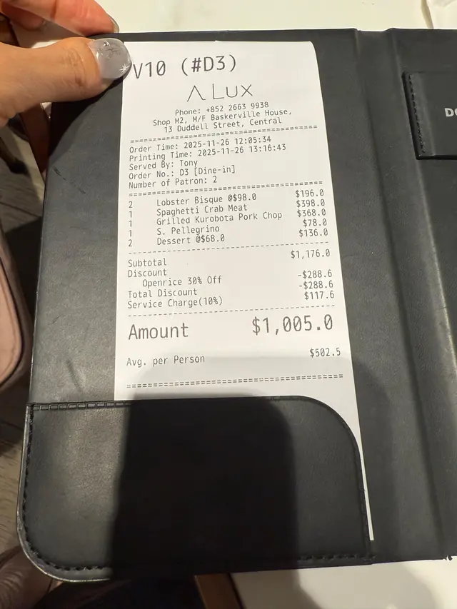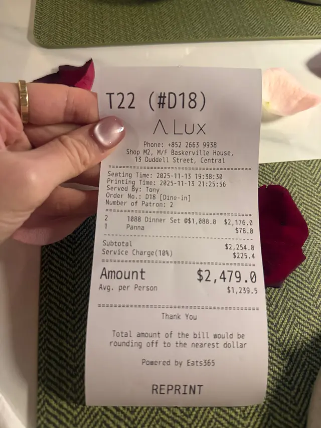 A Lux (中环) 网上订位享低至7折优惠并赚Rice Dollars 网址: https://s.openrice.com/QrLS0TbeB00 地址: 香港中環都爹利街13號樂成行地庫M2號舖 电话: +852 26639938
