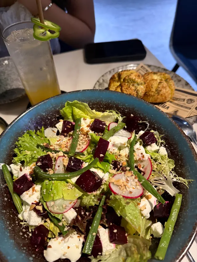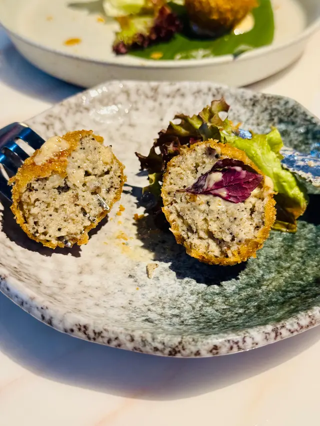 📍 𝐀.𝐎.𝐌 (西環)地址: 香港西環西營盤高街𝟖𝟖號地舖💰 總數 $𝟗𝟐𝟖 𝐇𝐊𝐃(~𝟐人份)|人均 $𝟒𝟔𝟑 𝐇𝐊𝐃==============================在舊店的時候便已經來過,新店環境更大更寬敞 還設有室內外兩部分,食物是一如以往的的好味超高質素❤️———✤ 現烤蒜香芝士麵包球|$𝟔𝟖需時𝟐𝟎分鐘的這個焗麵包有驚喜🥯餐廳從麵糰開始製作,上枱時離遠邊聞到超香的香草牛油味,切開鬆軟的麵包便看到店家秘制𝐜𝐫𝐞𝐚𝐦 𝐜𝐡𝐞𝐞𝐬𝐞 𝐬𝐚𝐮𝐜𝐞✰ 油封蒜頭欖油蝦|$𝟖𝟖𝐓𝐚𝐩𝐚𝐬常見的蒜片蝦居然這裡會看到!用上鳳尾蝦肉質特別爽口,墨西哥辣椒乾浸泡的橄欖油蒜味濃郁,浸泡的蒜頭軟爛塗抹在𝐭𝐨𝐚𝐬𝐭上超惹味🌶️✰ 希臘紅菜頭沙拉|$𝟗𝟖沙律混合了羅馬生菜、紅菜頭、𝐲𝐨𝐠𝐡𝐮𝐫𝐭、豆角和少許𝐧𝐮𝐭𝐬,口感豐富,非常開胃!✰ 濃厚蝦醬意大利粉|$𝟏𝟔𝟖蝦𝐛𝐚𝐬𝐞意大利粉味道濃郁,𝐜𝐫𝐞𝐚𝐦𝐲無比🦐✰ 香煎荷蘭三層肉|$𝟏𝟖𝟖外皮焦脆的豬腩肉切開可見三層肉肥瘦分明,入口瞬間融化,絲毫不會肥膩,搭配的香茅椰奶𝐬𝐚𝐮𝐜𝐞,泰式風味濃郁;貼心的店家預備了半塊脆皮焦糖檸檬,特別推薦大家把切開的三層肉沾取少許𝐜𝐚𝐫𝐚𝐦𝐞𝐥𝐢𝐳𝐞𝐝 𝐥𝐞𝐦𝐨𝐧🍋立馬把豬腩肉推上另一個層次🥹✰ 脆糖香草吉士牛角包窩夫|$𝟖𝟖店家的𝐜𝐫𝐨𝐟𝐟𝐥𝐞即時由生麵團製作,然後烤焗成酥脆的𝐜𝐫𝐨𝐬𝐬𝐚𝐧𝐭,再把新鮮的𝐜𝐫𝐨𝐬𝐬𝐚𝐧𝐭🥐放進𝐰𝐚𝐟𝐟𝐥𝐞機製作成𝐜𝐫𝐨𝐟𝐟𝐥𝐞,切開的時候便感受到無敵酥脆的千層酥皮口感(第一次吃這麼酥脆的𝐜𝐫𝐨𝐟𝐟𝐥𝐞🧇)搭配𝐜𝐫𝐞𝐚𝐦和𝐜𝐮𝐬𝐭𝐚𝐫𝐝,冰火交融🧊…查看更多