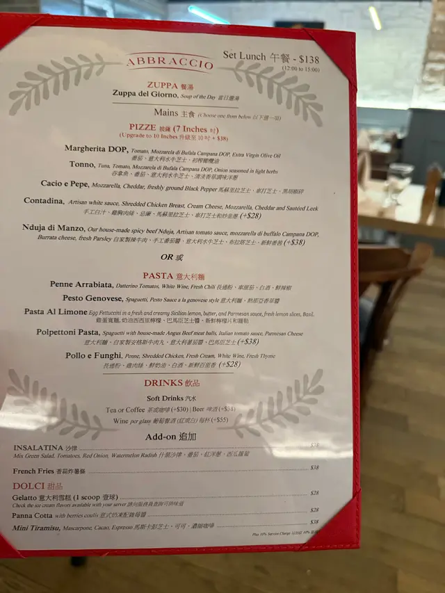 Abbraccio (北角) 网上订位即赚Rice Dollars 网址: https://s.openrice.com/QrLS00K8D00 地址: 香港北角堡壘街19A號景文樓LG樓 电话: +852 23297028