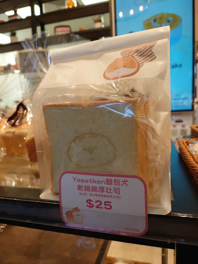 Free ride day took us to Sheung Shui! An area we rarely if ever go to as it's so far from my home! It was here we discovered a mall called Landmark North. They had a Christmas decorations of Yeast Ken. A dog that is shaped like bread. Or is it the other way around????As the mall was doing this Christmas display, the bakery inside the mall did a special bread item featuring this character.They had a loaf of bread with the character stamped on it.They also had flat buns stuffed with filling such as azuki bean, seseame and custard. They sold regular Hong Kong syle bread. Everything was labelled in Chinese only. There was no English.I decided to get in the spirit of the season and got myself a bun with azuki bean filling as that was the only type of filling left. It had the character stamped on it! So adorable.Biting into it, the filling was only filled half way. But the part that was filled was really good and plentiful. Not too sweet but a decent taste of red bean. The bread itself was actually quite good. Slightly sweet and fragrant with good tearable texture.The bread was quite good and the character was stamped on quite well. For $15, it was a decent price.…查看更多