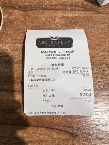 ABC BAKERY (東港城) (将军澳) 网址: https://s.openrice.com/QrLS0rLaB00 地址: 香港將軍澳坑口重華路8號東港城2樓259B號舖 电话: +852 23386169