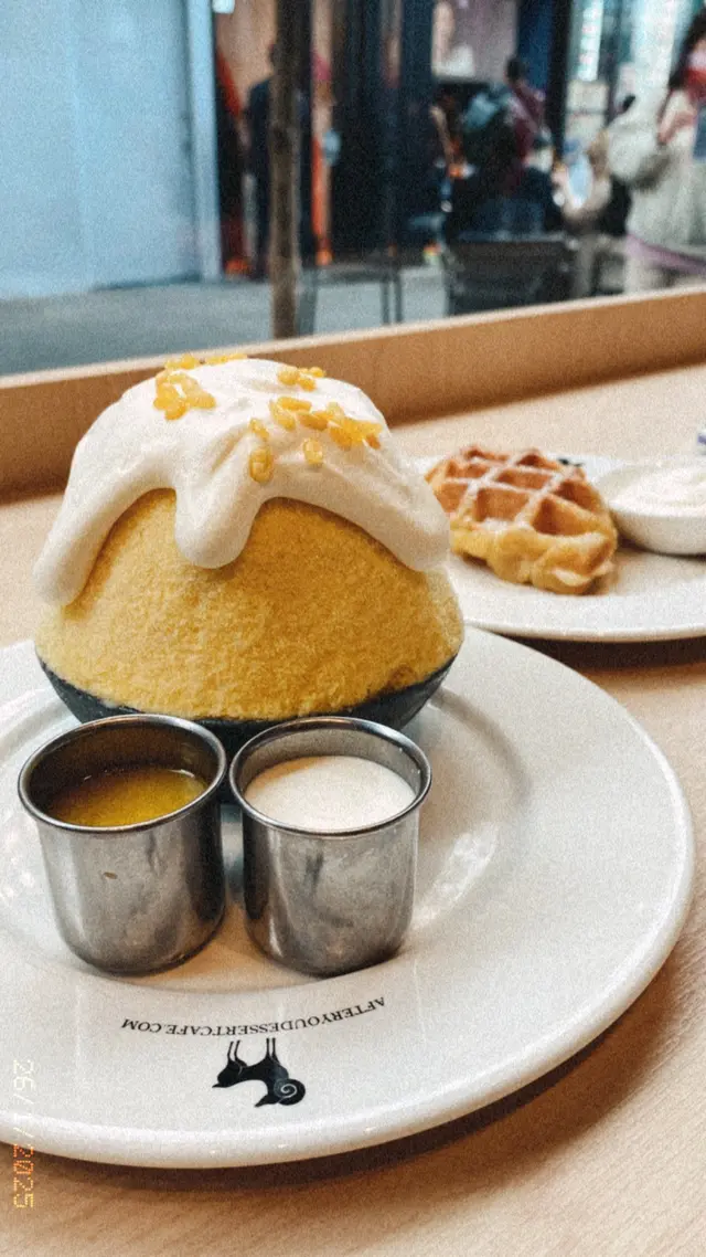 聽講AfterYou準備撤出香港🥺想趕係撤出香港之前!食到一次🥲所以~今日4.26 12:00pm 就開始排隊~排左2個鐘~2:00pm入得~🧐最關注嘅刨冰🍧~剩返細Size !!!不過好彩都仲有好多味道可以選擇🤩(小)芒果糯米飯刨冰💛 $99 芒果牛奶冰~幾重芒果味✨面頭有椰奶奶蓋&炒綠豆✨入面真係有新鮮芒果&糯米飯😂刨冰質感好綿密~入口即溶✨仲有額外嘅芒果醬、椰奶醬提供✨口感好有層次~好豐富💛✨金莎朱古力蜜糖吐司 🤎 $128吐司焗得好脆~配料、醬料份量好多!有金莎!Nutella ! 仲有蜜糖🍯😂⋯同想像中一樣咁甜~~~超級重甜!好邪惡!食完好有罪惡感😿吐司方面就比較普通🧐不過不失啦~如果想試AfterYou ~✨✨✨都係比較推薦刨冰系列!!✨✨✨…查看更多