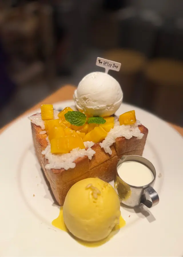 After You四月尾已經全線結業,諗返佢好多年前嚟香港喺銅鑼灣開pop up store 已經好想食,到之後佢再返嚟香港,首先喺灣仔然後喺Airside再開分店,終於我喺二月尾喺灣仔食咗一次,仲catch到利東街嘅情人節裝飾🥰,當晚我9點幾到都排左一陣隊先入到啊,佢嘅刨冰同吐司都有分Original & Baby size, 咁客人就可以因應自己嘅食量去選擇。Cookie Butter Toast Original $128牛油焦糖脆餅吐司其實已經食咗晚飯,但有人話要揀正常份量😂真係超大份,吐司香脆,好重牛油焦糖味,仲配埋雲呢拿雪糕同埋忌廉,雖然好飽但我哋都食晒😂Baby Thai Tea Kakigori $99泰式奶茶刨冰本身想試芒果糯米飯刨冰,但係賣曬😱 咁就叫咗都係好熱門嘅泰式奶茶刨冰, 奶茶味香濃,刨冰亦都唔會好快溶晒,有啲唔夠喉,早知叫正常size😂好彩總算食到,否則真係要去泰國食啦😅After You Dessert Café灣仔皇后大道東200號利東街G24-25號舖#healingbobo #foodie #hkfoodie #foodiehk #香港 #美食 #香港美食 #灣仔 #灣仔美食 #泰國 #泰國美食 #甜品 #dessert #刨冰 #Kakigori #吐司 #Toast #Thai #Thailand #AfterYou #AfterYouDessertCafé…查看更多