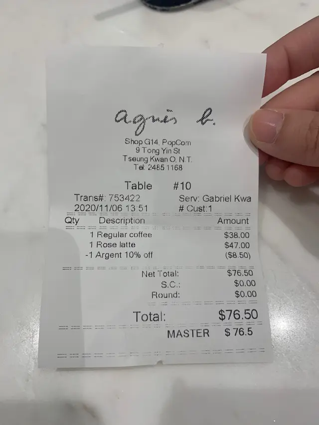 約好友行山,在此商場乘車,好友記起有呢間咖啡店嘅折扣,未齊人大家坐低飲一杯先,商場內開放式設計,好開揚,主色黑色,小圓枱加上花地磚,幾有風格,揀咗一張3人枱,朋友去落單,然後店員出菜會通知我哋去櫃檯取!黑色餐盤+黑色紙杯,設計貫徹店舖風格Regular coffee($38再9折)我只飲齋啡,咖啡很熱,有紙圈都辣手,飲落咖啡微甘,不會太炭燒味,再冷一點時會出微酸味(可接受)整體是合我口味的朋友飲Rose latte($47再9折)我欣賞有蓋外賣杯都會照做拉花嘅咖啡店,客人未必會打開蓋睇,未必有人欣賞到都照拉花,對我來講是一種態度,加分我是進店時探熱與取咖啡時接觸店員,男店員有禮,店內雖然在商場地下中央,又不會嘈雜,大家靜靜的享受一杯下午茶咖啡!感覺很好查看更多