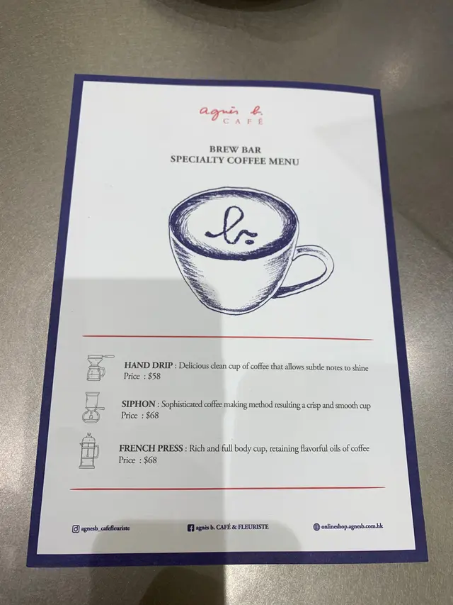期待已久係popcorn中庭入口嘅Agnes b. Cafe,經歴3星期圍板裝修,今日終於重開了🤩多咗一份驚喜係new coffee brew section, 可以坐counter bar 櫈觀賞barista Yvonne,同靚女店長Sammi精心炮制咖啡☕️過程🤓5款咖啡豆,3種冲調方式,今日就揀咗Brazil San Fran 以Siphon冲調。口感薄身,淸新,又唔太酸,再配搭返一小杯Agnes b. Chocolate 雪糕杯($38)絕對係午餐後最高享受😙新裝修店內設計,新座椅及擺設風格都較以前明亮,簡潔,又帶點法國🇫🇷風情,再配合埋旁邊Agnes b. Voyage 品牌商店,正係約埋朋友短聚好地方🥰查看更多