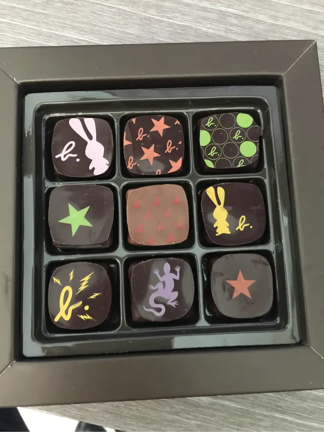Agnes B 朱古力禮盒,出名又靚又好食。今次收到呢款粒粒不同款,圖案好可愛可可味濃,少少甘香,唔會太甜,一盒9粒,分朋友,自己食都岩。真係送禮自用佳易😂係價錢貴少少查看更多