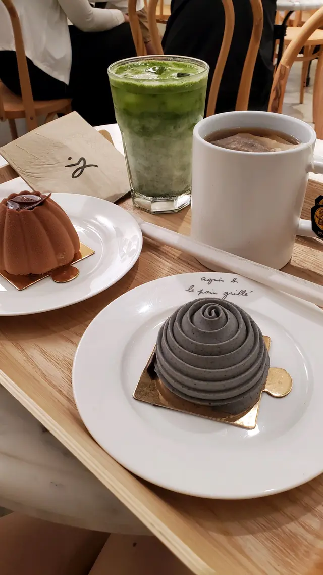同閨蜜周末午飯後想黎個甜品下午茶,就黎到位於旺角朗豪坊3樓嘅agnes b cafe。呢度裝修以白色做主調,門口有得俾客人選購蛋糕,牆身有啲相片做佈置,枱係雲石面,入到去好似置身法國小餐館一樣。好在唔駛等位,即刻入去攞張枱坐低。咁啱間店做緊promotion, 買三件蛋糕可以減$30,我地就揀左伯爵茶朱古力、柚子、同埋栗子蒙布朗。柚子蛋糕口感清新,栗子蒙布朗就係一代經典,栗子cream綿密香甜。我自己最鍾意伯爵茶朱古力,覺得茶香味同朱古力嘅甘味非常之夾。…查看更多