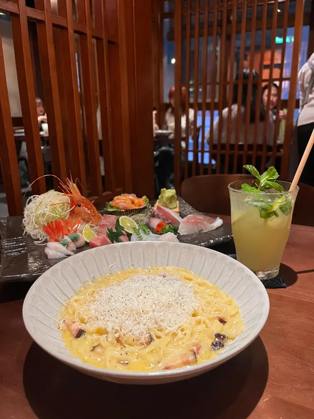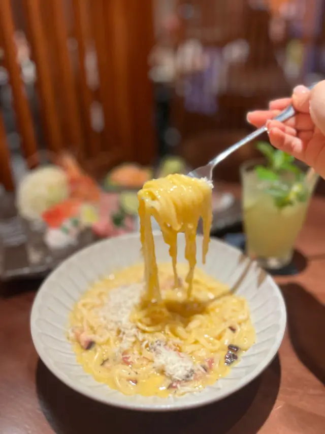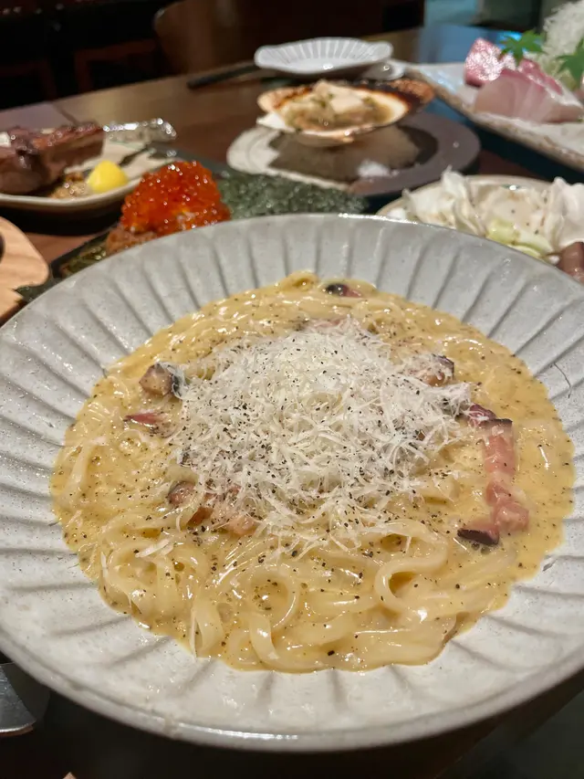 首先個烏冬都幾大碗,配料一啲都唔馬虎,糖心蛋、叉燒、香蔥,一般拉麵店要有嘅嘢佢一樣都冇缺少到🌸呢個位覺得已經有誠意🙌🏻啲雞湯偏淡,烏冬Q彈,食落暖心🥰🌟雞湯卡邦尼烏冬 $98