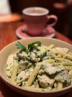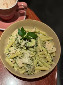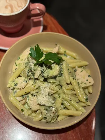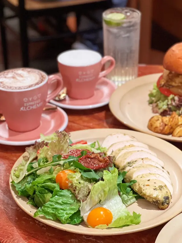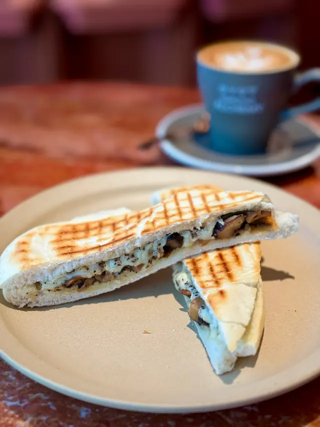 一直都想揾个机会来这间始创店朝圣,碰巧旧同事在这里返工于是约于此食饭。旧同事说想慢慢叹咖啡同吹水晚市绝对是最佳时机,平日午膳时间一位难求,队尾最起码到店外的扶手电梯。可惜当晚 single origin brew 及 手冲咖啡都卖光了,L 退而求其次选了一杯由自家烘焙的咖啡豆冲制的 flat white,这款自家豆较 nutty 配合鲜奶味道均衡,而且很顺滑。旧同事 D 则选了一杯 mocha , 巧克力与 nutty 的咖啡亦都很平衡。甜品则选了自家制咖啡胡桃蛋糕,与一口热咖啡完美配搭,胡桃份量亦算多。至于另一款甜品都几特别,生酮花生酱黑巧克力忌廉卷花生酱味道不会盖过黑巧克力的味道。口感不错不会太干亦不会因为冷冻下变得太过湿润。杂菌黑松露酱芝士意大利三文治包含了大量的菇,加上黑松露入口香浓。暖暖的芝士亦满泻。另外一份是柠檬汁烤鸡烟肉意大利三文治, 柠檬汁平衡了肉的油腻感。置身于此环境享用一杯咖啡,慢慢谈天真的不错!…查看更多