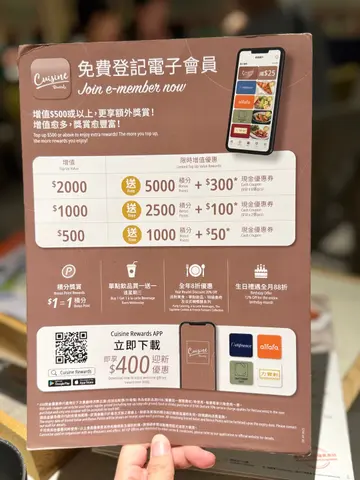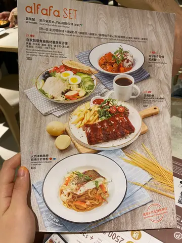 呢日难得同老公都放星期日,大家就去康怡行吓街食吓嘢。去到康怡𠮶时大约1:45,所以就睇lunch menu点知隔咗阵2:00店员就递上Tea Set Menu,所以我哋两边都有嗌~▫️Lunch:《烧猪肋骨 配alfafa轻盈沙律及薯条 $108》附热饮/加$5冻饮升级+$24 芒果Yogurt drink 份量比预期大,有成六至七条肋骨,烧得入味,肉够腍唔会干,加上烧汁几惹味; 粗薯条外脆香糯,令人一条接一条;沙律菜新鲜带微酸可减腻。这杯芒果Yogurt drink好美味,乳酪口感浓稠,偏甜唔会酸,仲有啖啖香甜芒果肉~▫️Tea:《烧烤酱炒牛肉芝士汉堡·薯条 $69》汉堡包焗过带微脆,牛肉份量多加上半蓉芝士同蕃茄,可口又Juicy~ 同样配有香脆开胃的粗薯条~附热饮/加$5冻饮升级+$12 法式焦糖爆谷朱古力(热)呢杯朱古力卖相吸引又好味,$12好抵~▫️Tea:《即制香蕉pancake·雪糕 $59》附热饮/加$5冻饮热杂莓花茶 pancake热辣辣香喷喷,入口松软,加埋雪糕一冷一热好正~ 埋单时仲免费登记埋佢个「 Cuisine Rewards 全新会员计划 」,有成总值超过$400迎新优惠,包括$25优惠券及免费alfafa 招牌沙律优惠券~又可以留返下次用啦!…查看更多