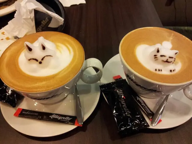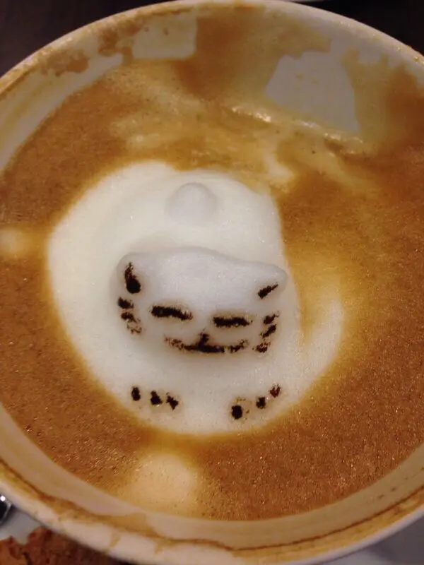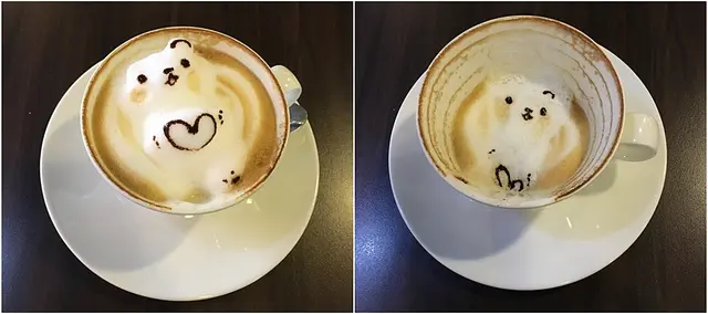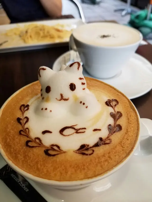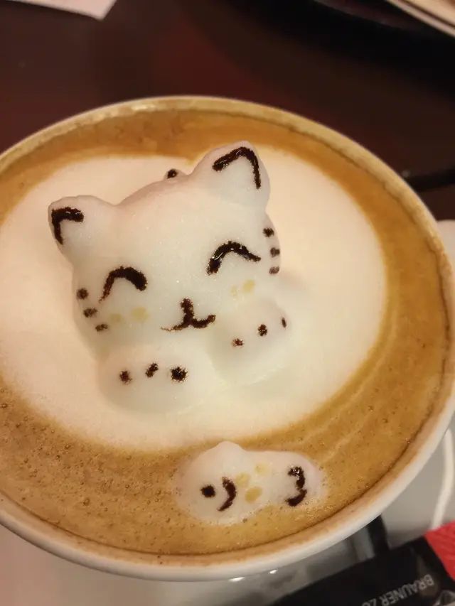 個日兩個女仔,尖沙咀行完街,想搵個地方休息下,傾下計,記起朋友之前講等過呢間D咖啡好得意,可有D動物仔拉花係突出黎咁,所以去即下。位置係近尖沙咀同柯士甸中港城,唔算太多人,揾到位之後,係收銀叫咗杯可要有3D立體貓貓同熊仔的cappuccino的咖啡,因為原來唔係全部飲品都夠挺身可以拉得起。超級可愛呀,好似隻貓仔沖涼緊咁,絕對適合女仔黎坐下傾下計!除咗咖啡,都有意粉同蛋糕提供,我地仲叫咗卡邦尼意粉同一個士多啤梨tart好味喎!飲到一半隻貓仔都仲係度查看更多