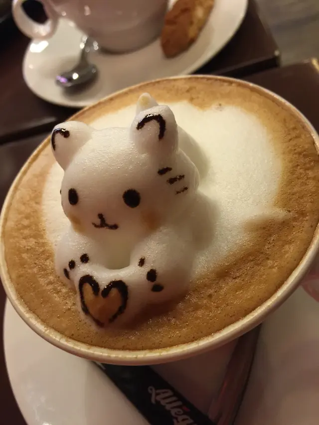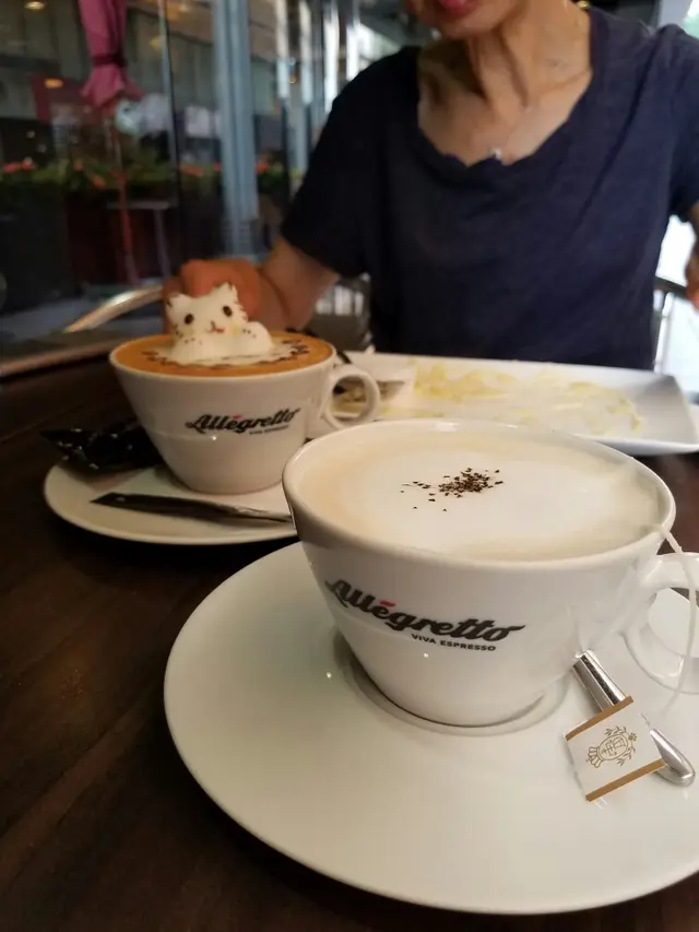 it was my second time visiting Allegretto. I've always liked this cafe for its uncrowded atmosphere (pretty rare in tst) and their infamous 3D art cappuccino.arriving here at around 3pm for a coffee break, I got my mom a 3D cappuccino and an earl grey honey latte for myself. we were noted that the 3D cappuccino would take around 30-45 minutes to be ready, but we didn't mind coz we were sitting on the outside, where we could enjoy the seaview while waiting. it certainly didn't feel too long and the coffees were ready. the 3D cappuccino kitty was cute as usual, my mom loved it lots. not only it was an art, but the cappuccino itself was very good too. even with the thick frothy cat, I could smell the sweet, mildly bitter aroma of espresso. taking a sip from the rim (trying our best not to ruin the art yet), there's the rich intense nutty espresso flavor, the smooth and milky froth complemented the espresso well.not only the cappuccino was good, so was the earl grey honey latte. it combined the sweetened earl grey tea with hot steamed milk and honey, a simple yet good drink.查看更多